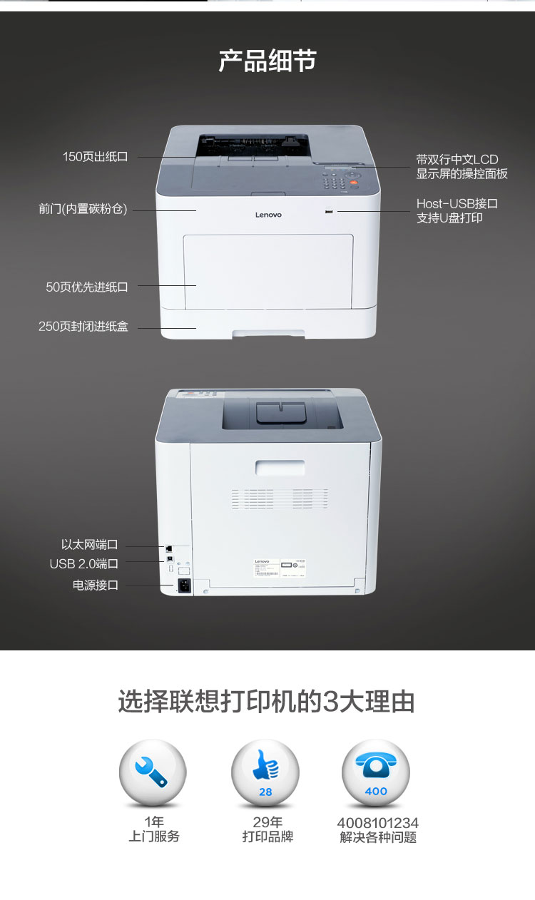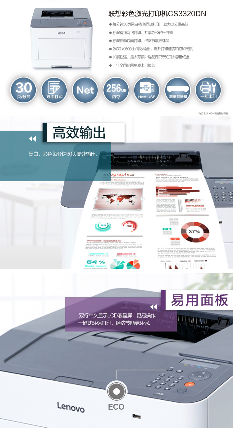 商品名称:联想(Lenovo)CS3320DN A4彩色激光打印机 自动双面 网络打印 30页/每分钟