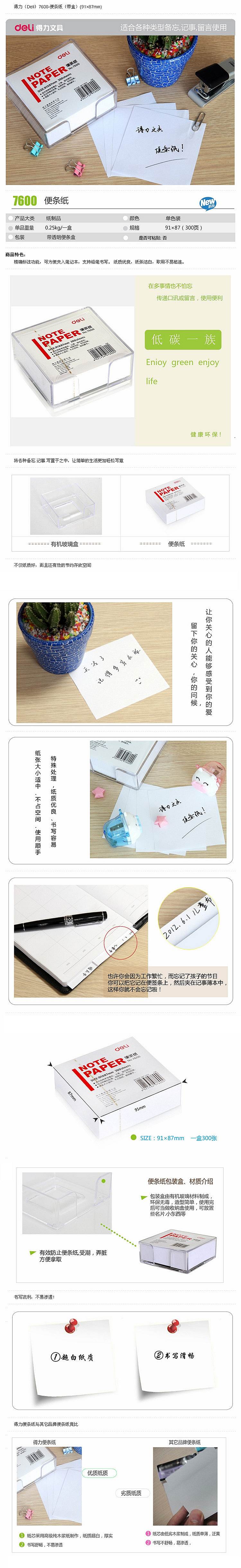 商品名称:得力(deli)91×87mm/300页带盒便签纸便条纸便签本 7600