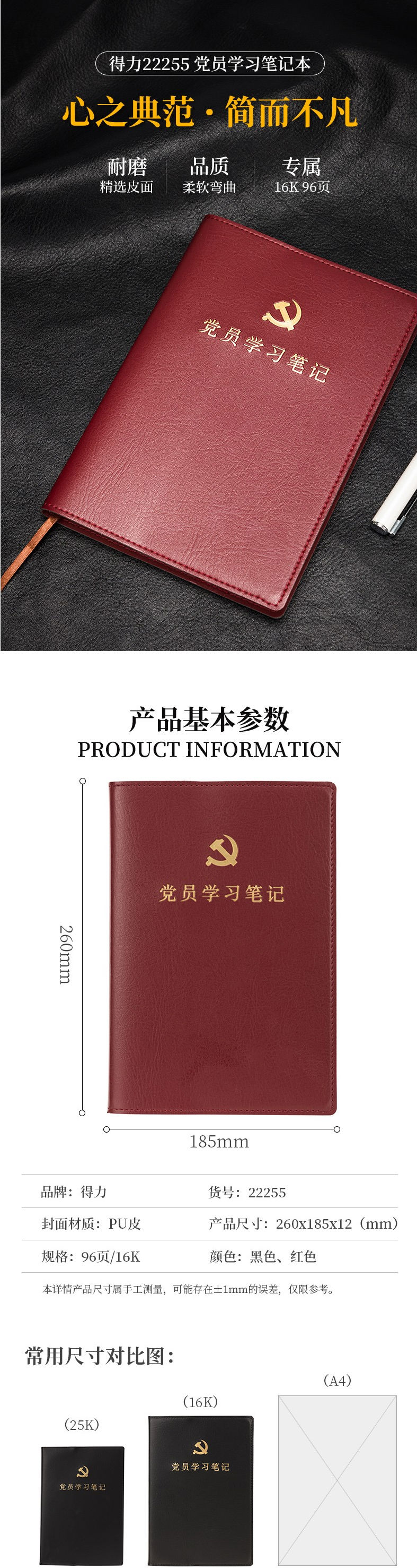 商品名称:得力(deli)党员学习笔记本 红色-25K-96张 22254
