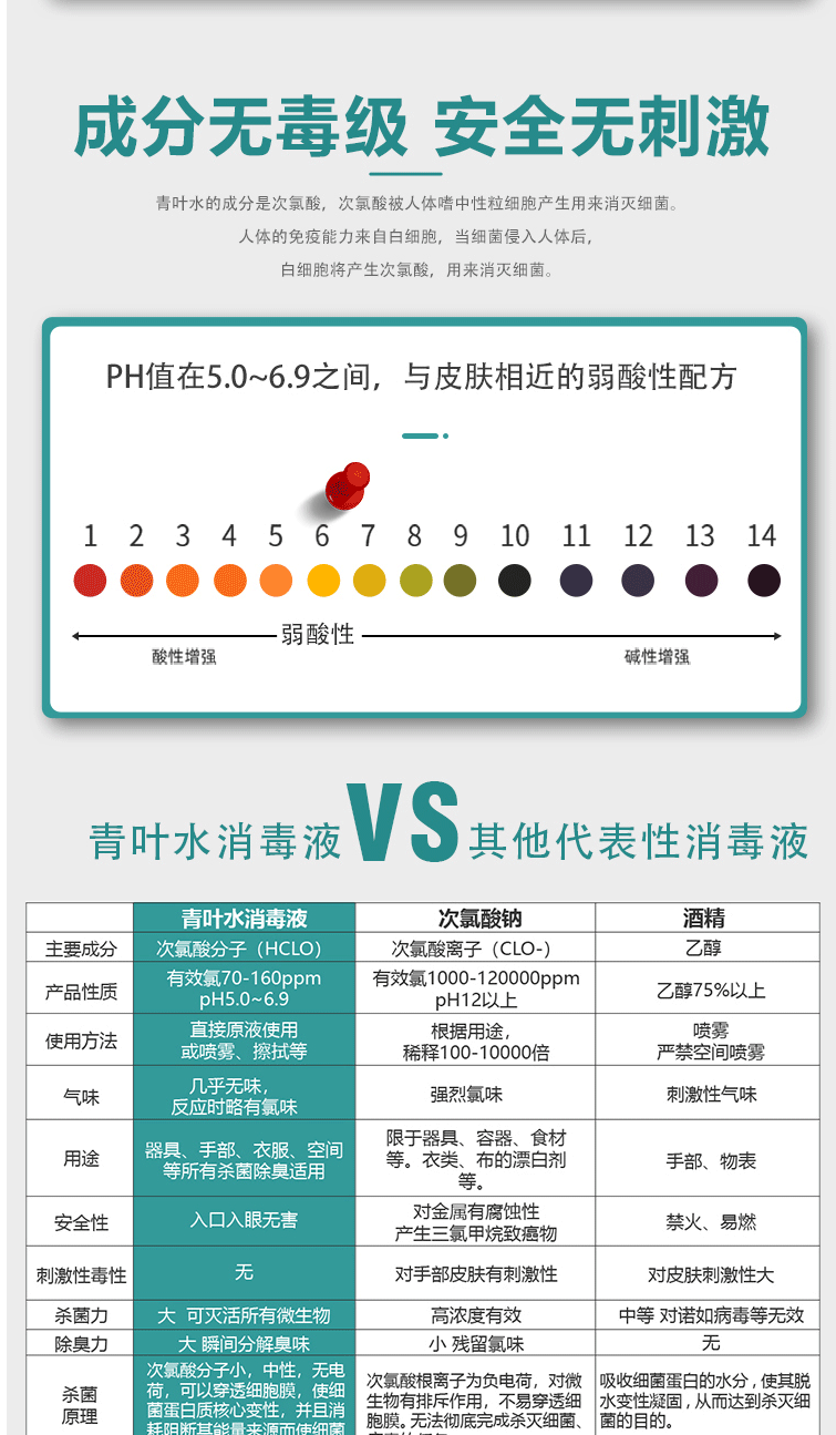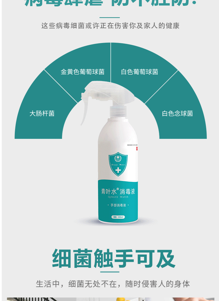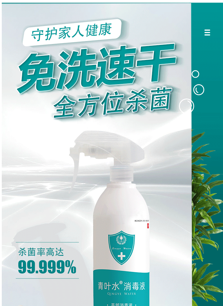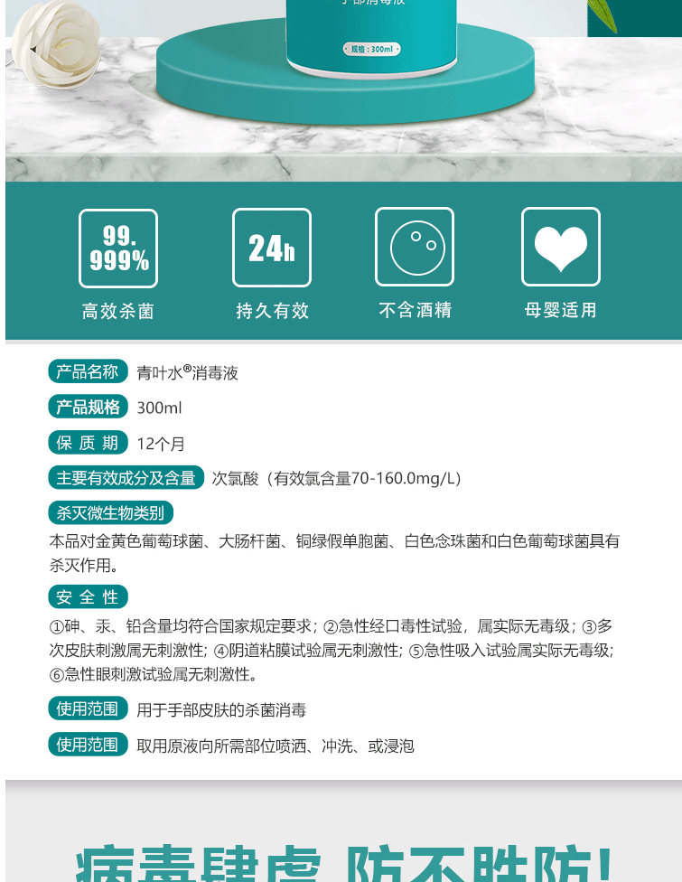 商品名称:青叶水手部消毒液免洗消毒水洗手液含氯次氯酸 手部消毒液300ml