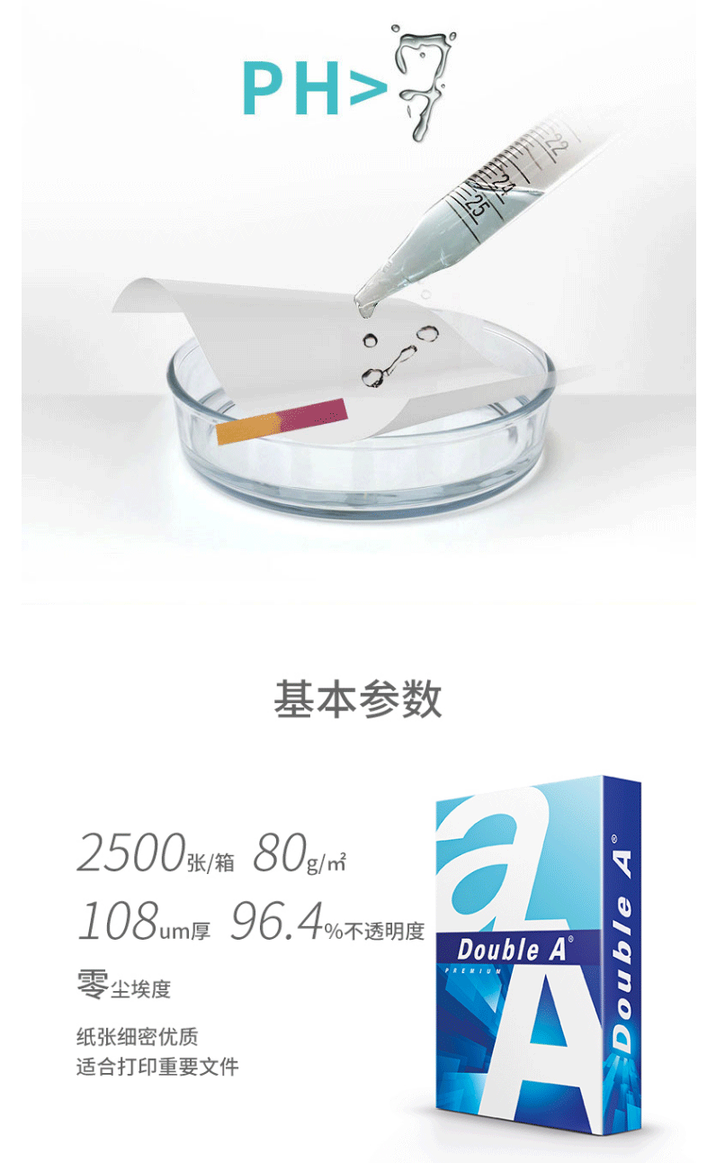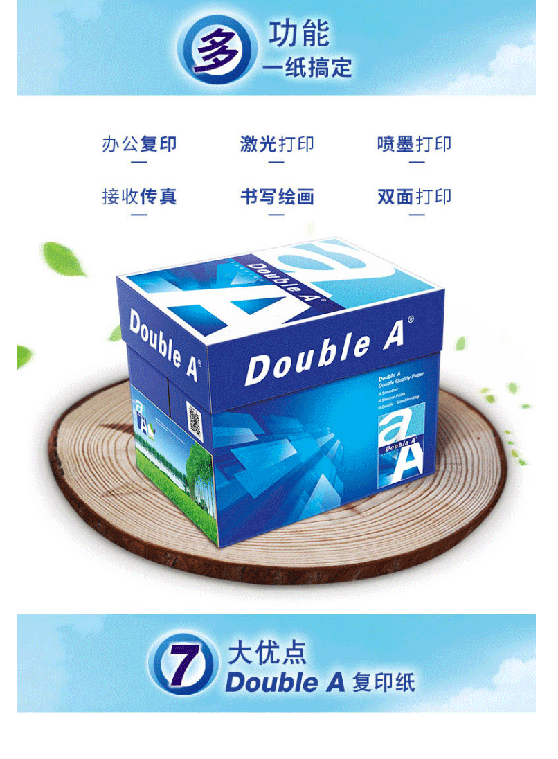 商品名称:Double A复印纸A4-80g 500张/包 5包/箱
