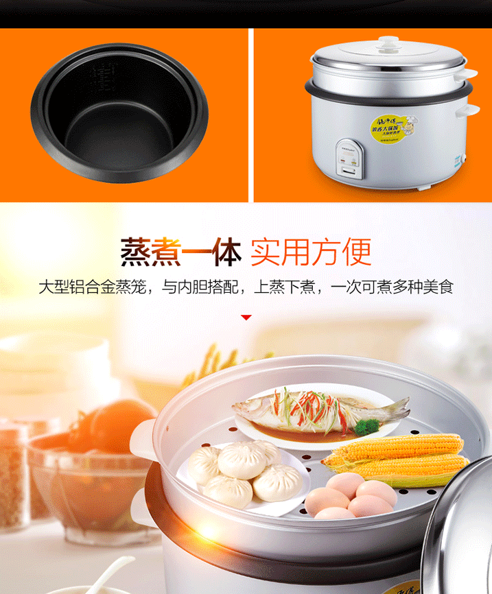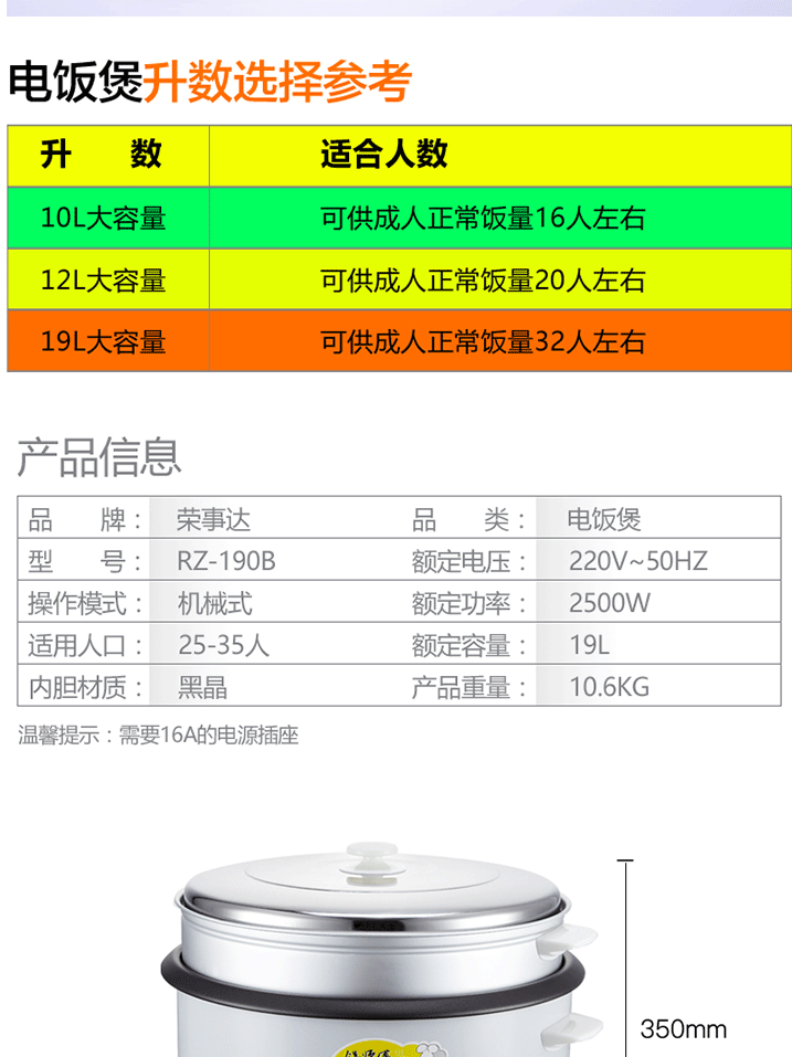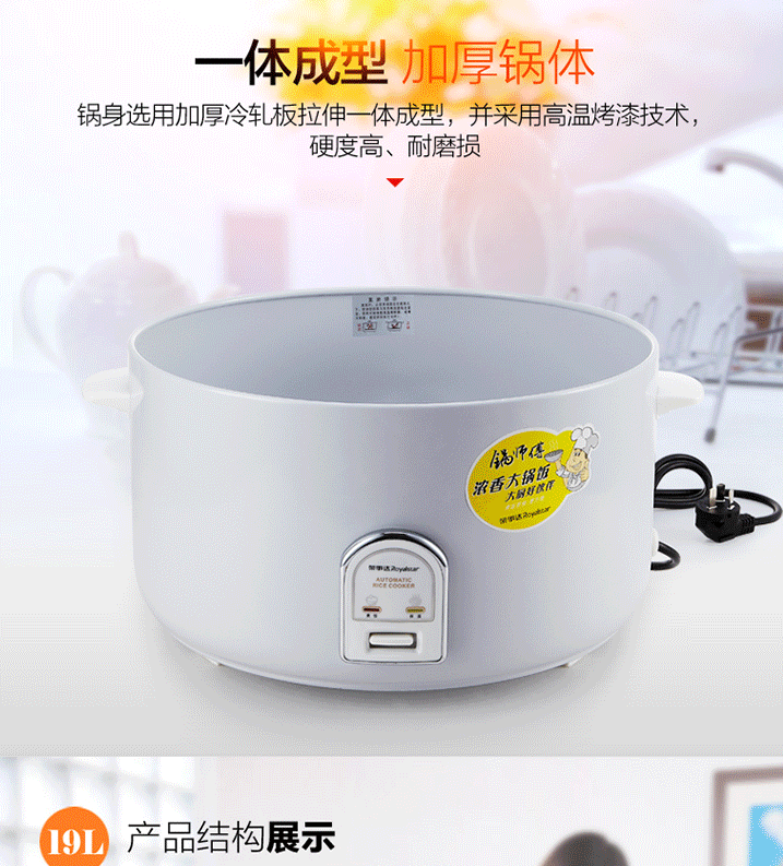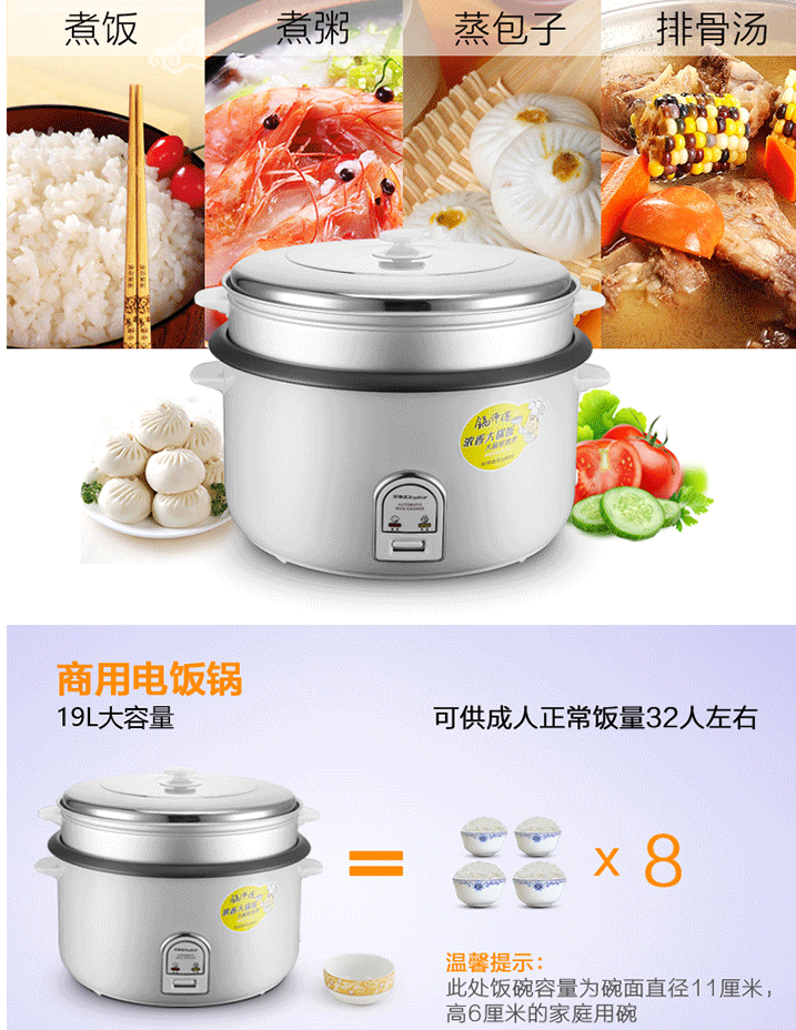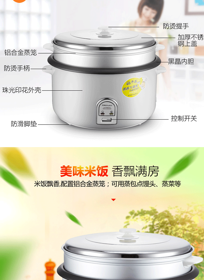 商品名称:荣事达(Royalstar)电饭煲电饭锅传统老式商用19L大容量带蒸笼RZ-190B