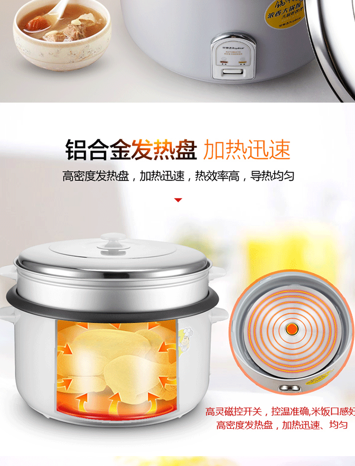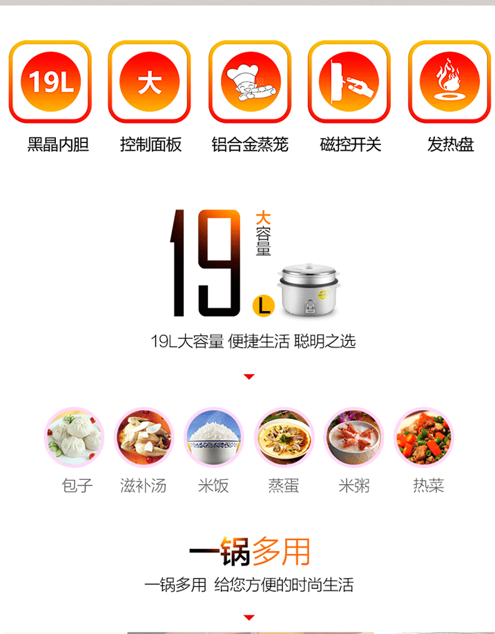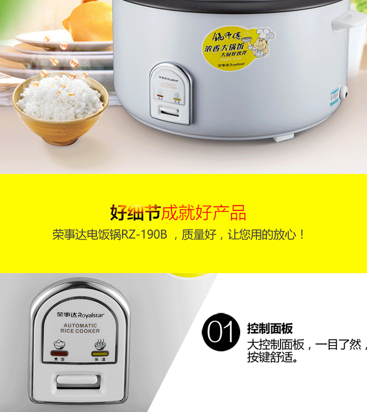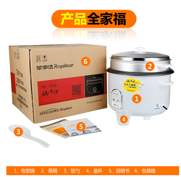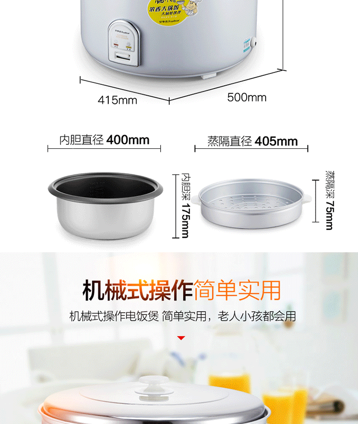 商品名称:荣事达(Royalstar)电饭煲电饭锅传统老式商用19L大容量带蒸笼RZ-190B