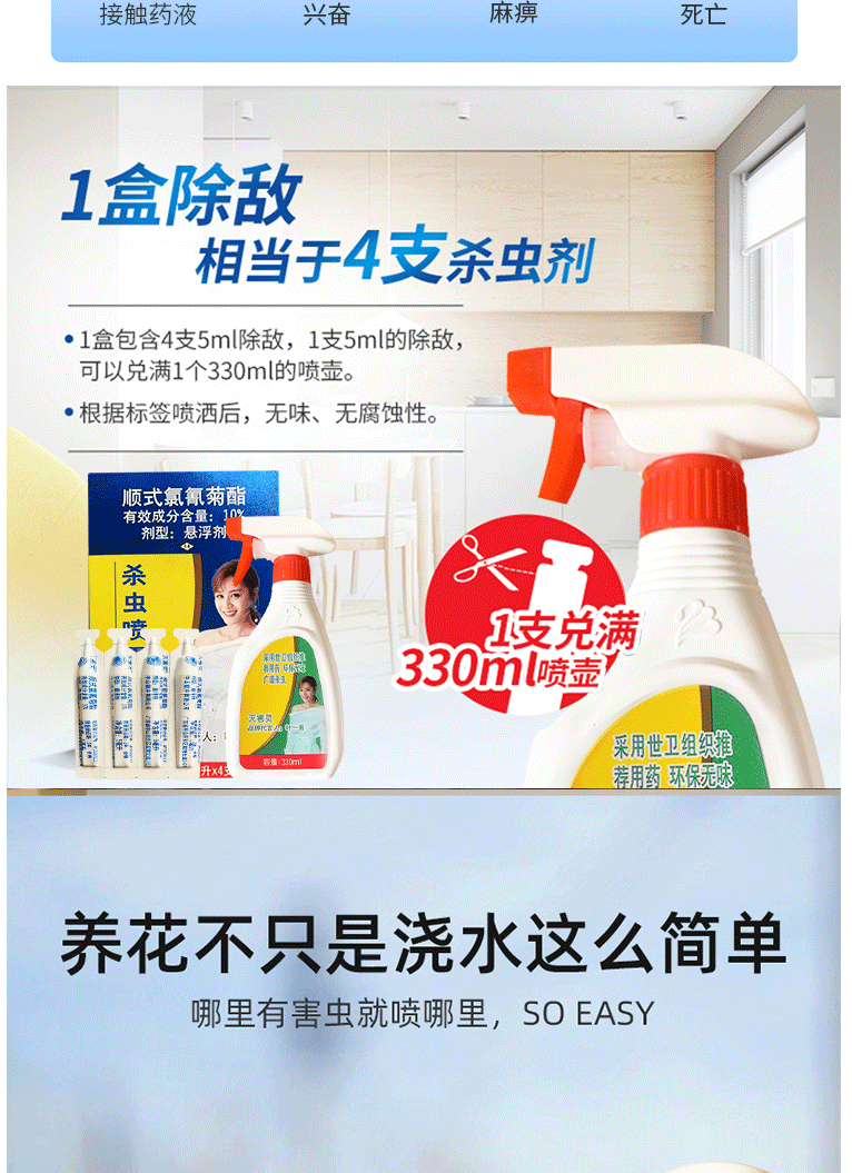 商品名称:灭害灵花卉植物杀虫剂 杀虫喷雾剂 5ml*4