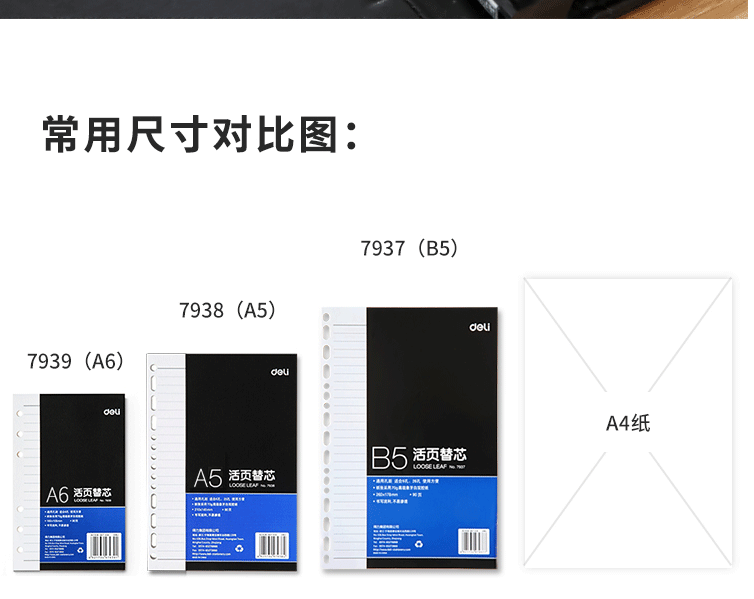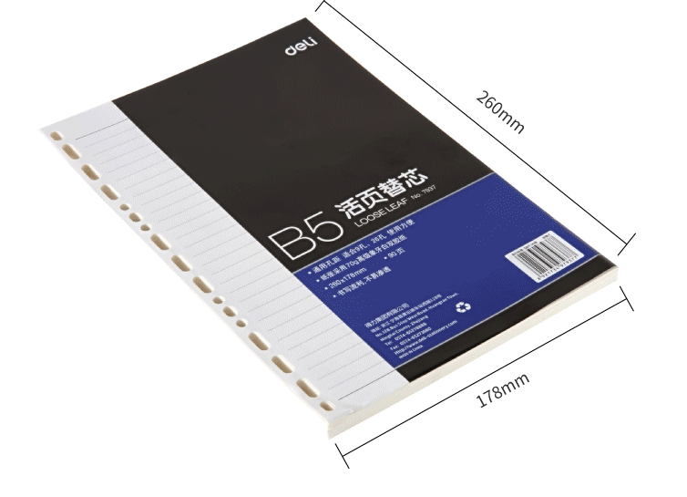 商品名称:得力(deli)16K90张活页本册替芯 9孔26孔记事本笔记本子内页 7937