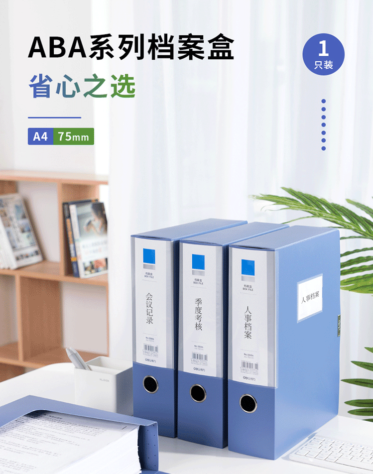 得力(deli) 75mm档案盒 A4塑料档案盒 加厚 5684