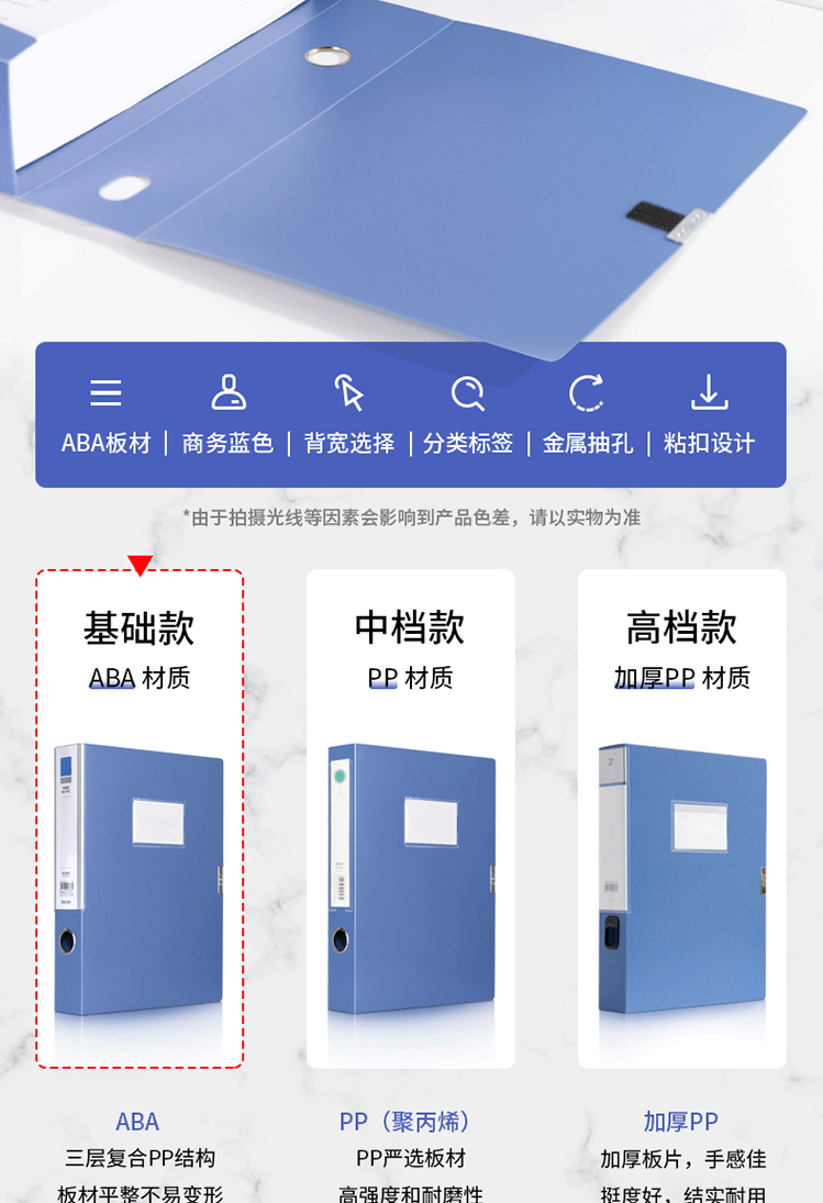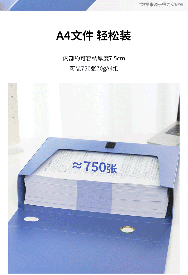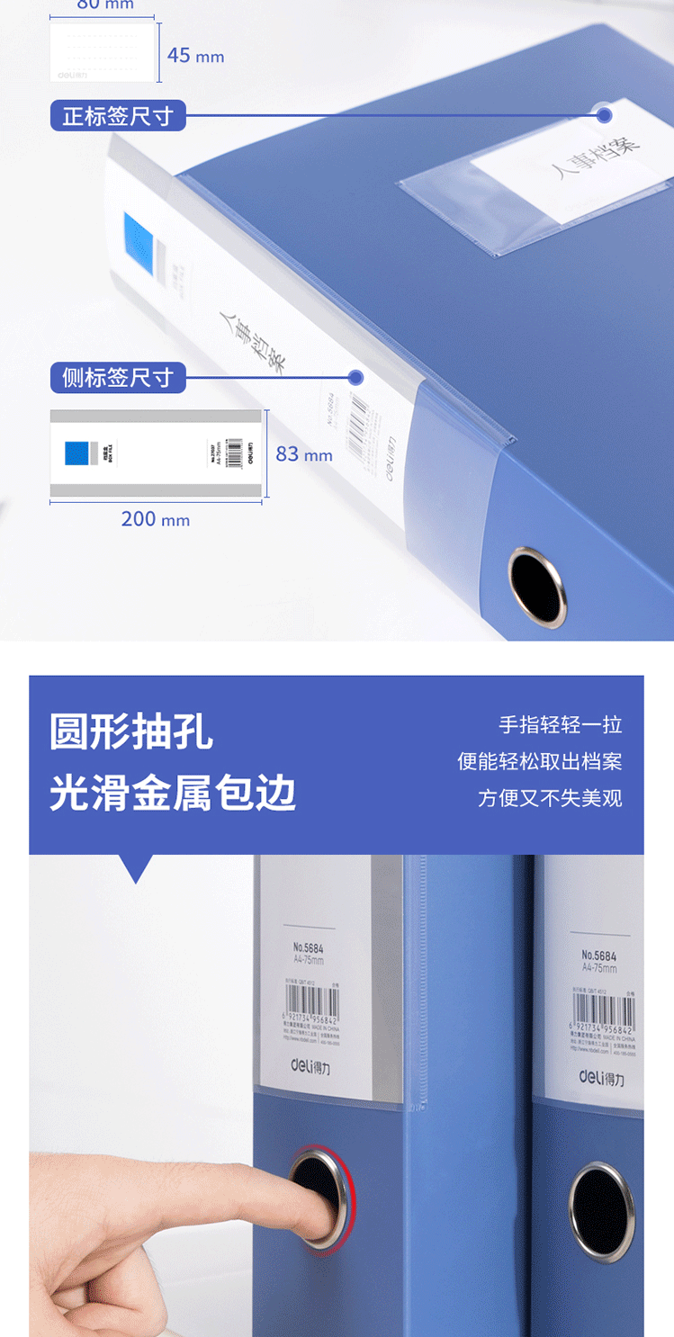 商品名称:得力(deli) 75mm档案盒 A4塑料档案盒 加厚 5684