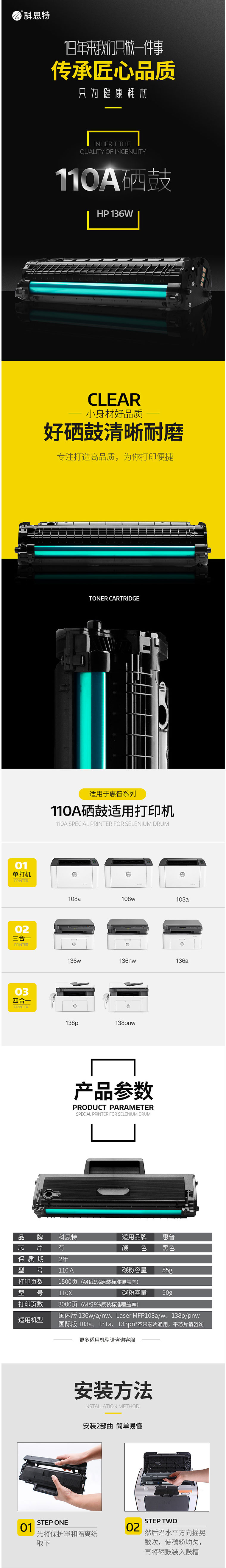 商品名称:科思特 110A硒鼓 适用于惠普 108a/W MFP 136w/a1110a 专业版(含芯片)
