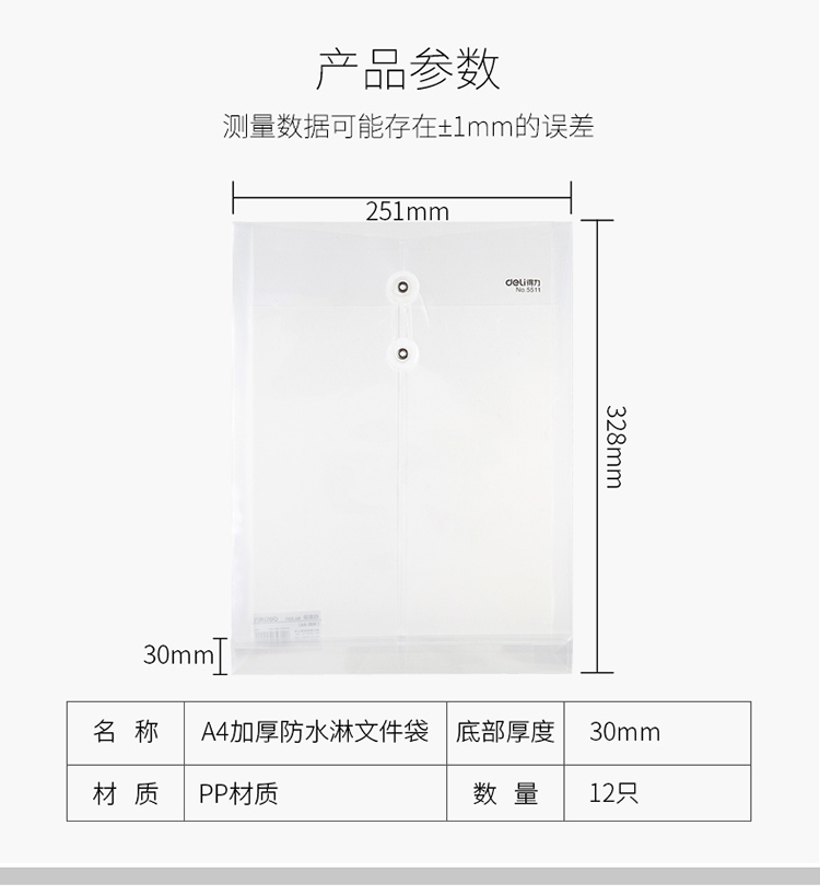 商品名称:得力 5511 塑料档案袋 白(单位:个)