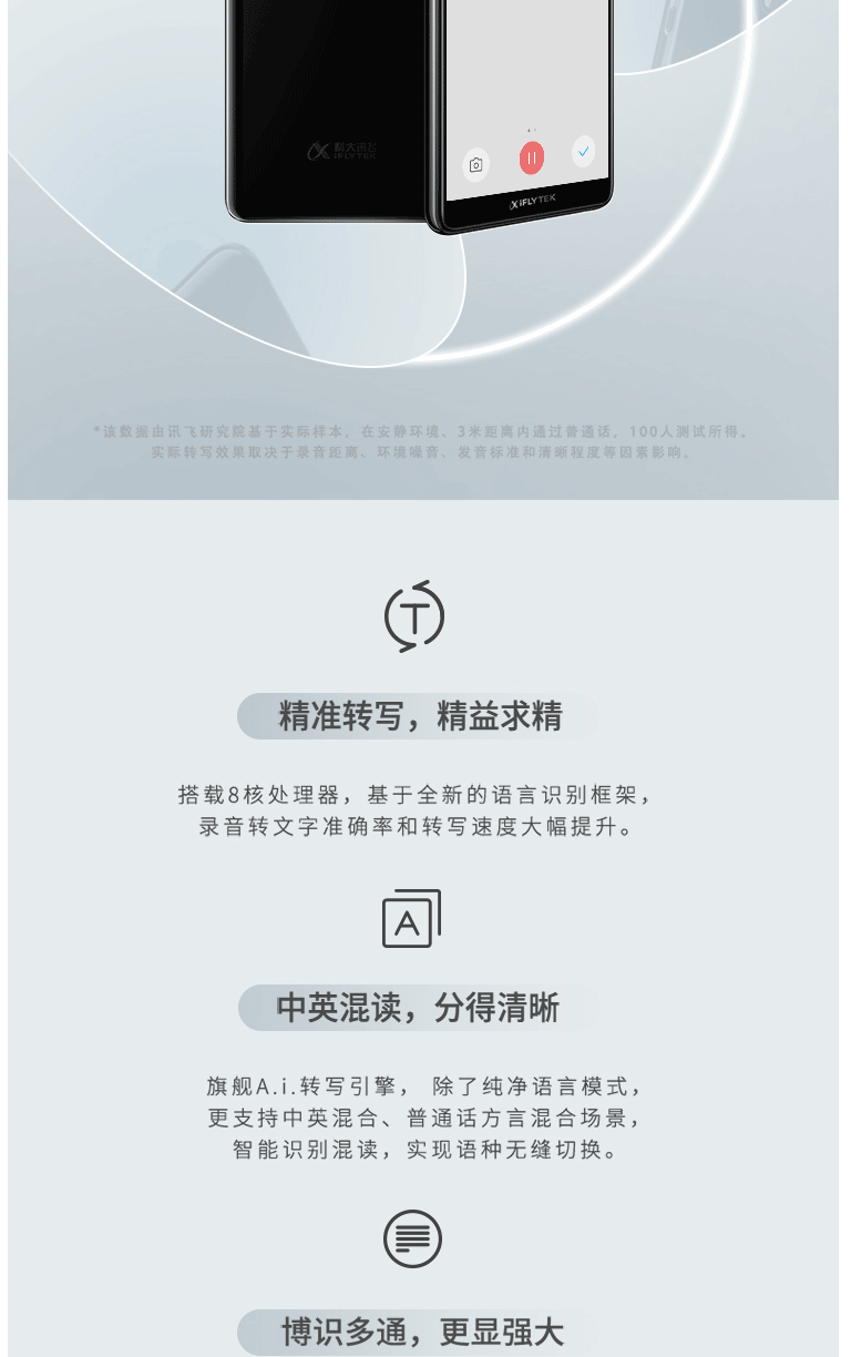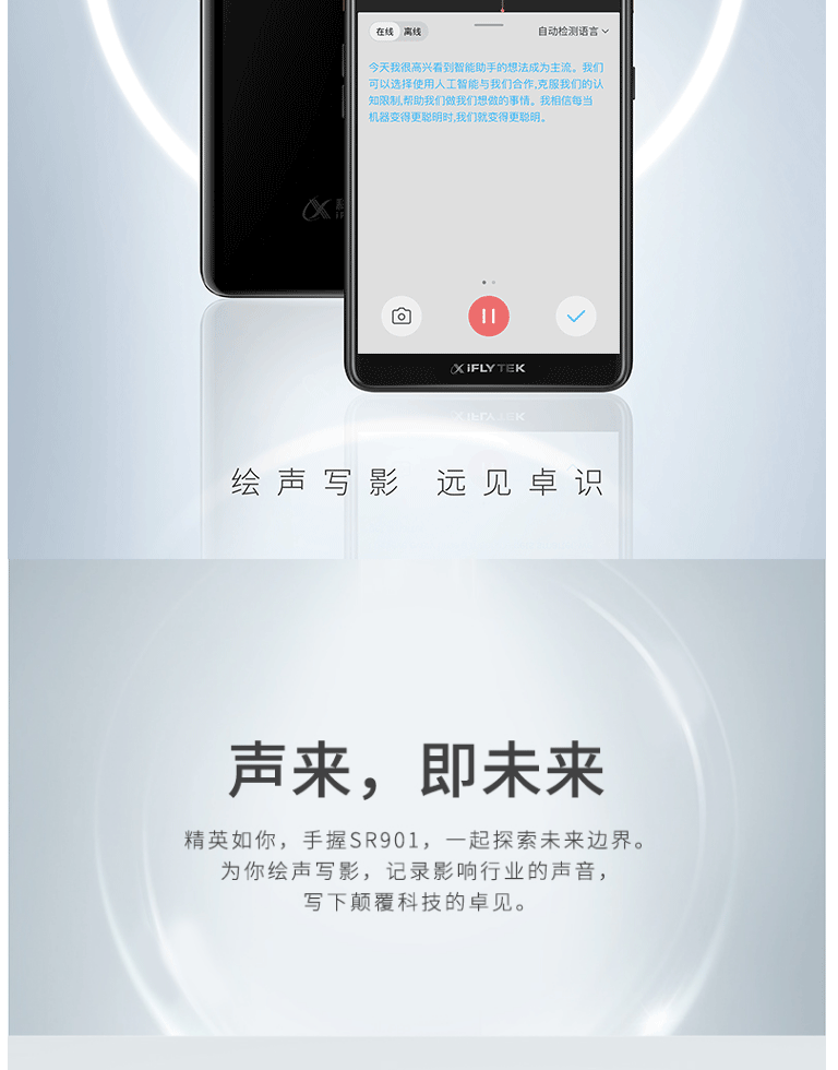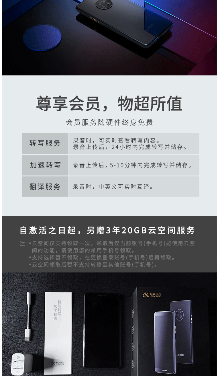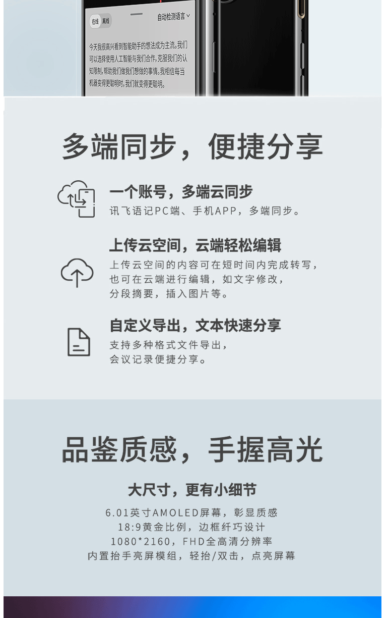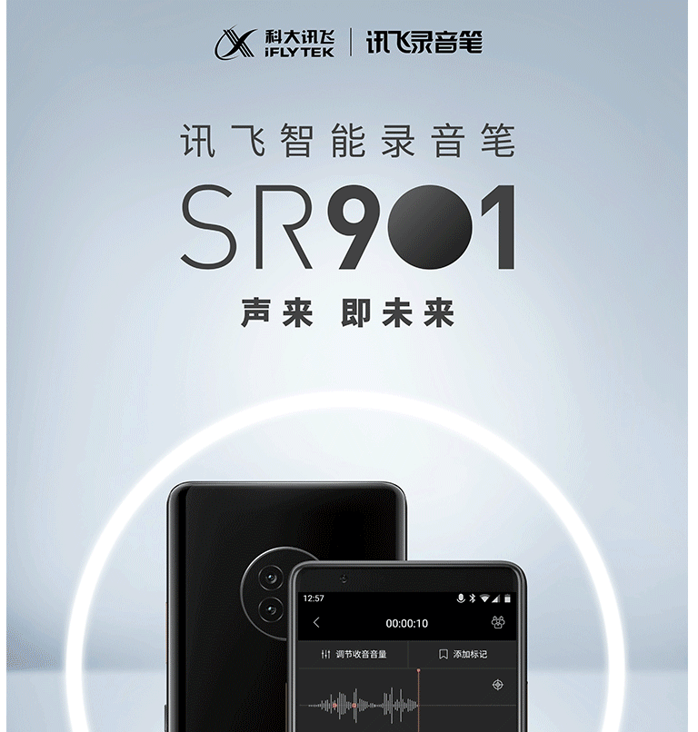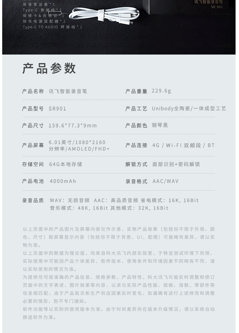 商品名称:科大讯飞AI智能录音笔SR901终身免费转写 中英转译专业触屏64G+云储存 钢琴黑