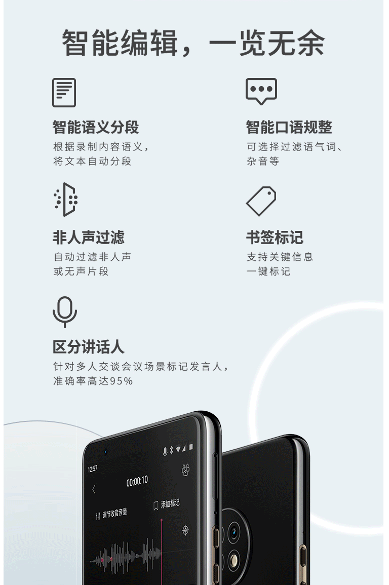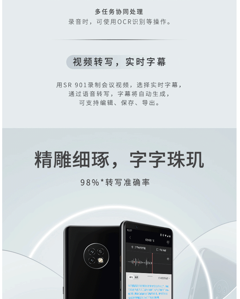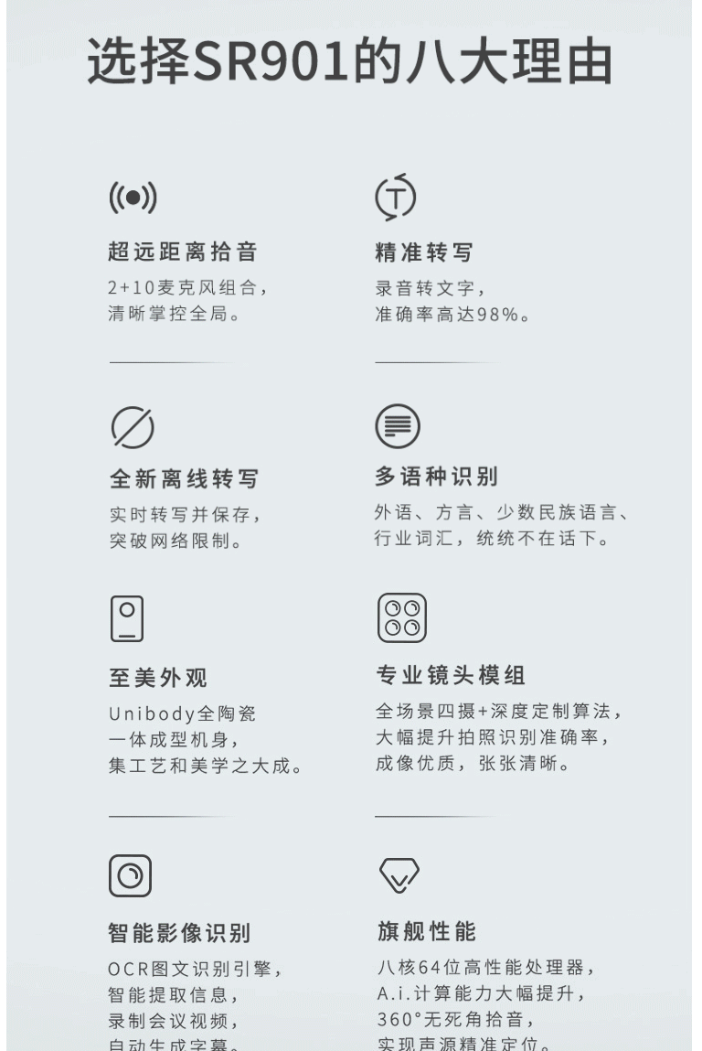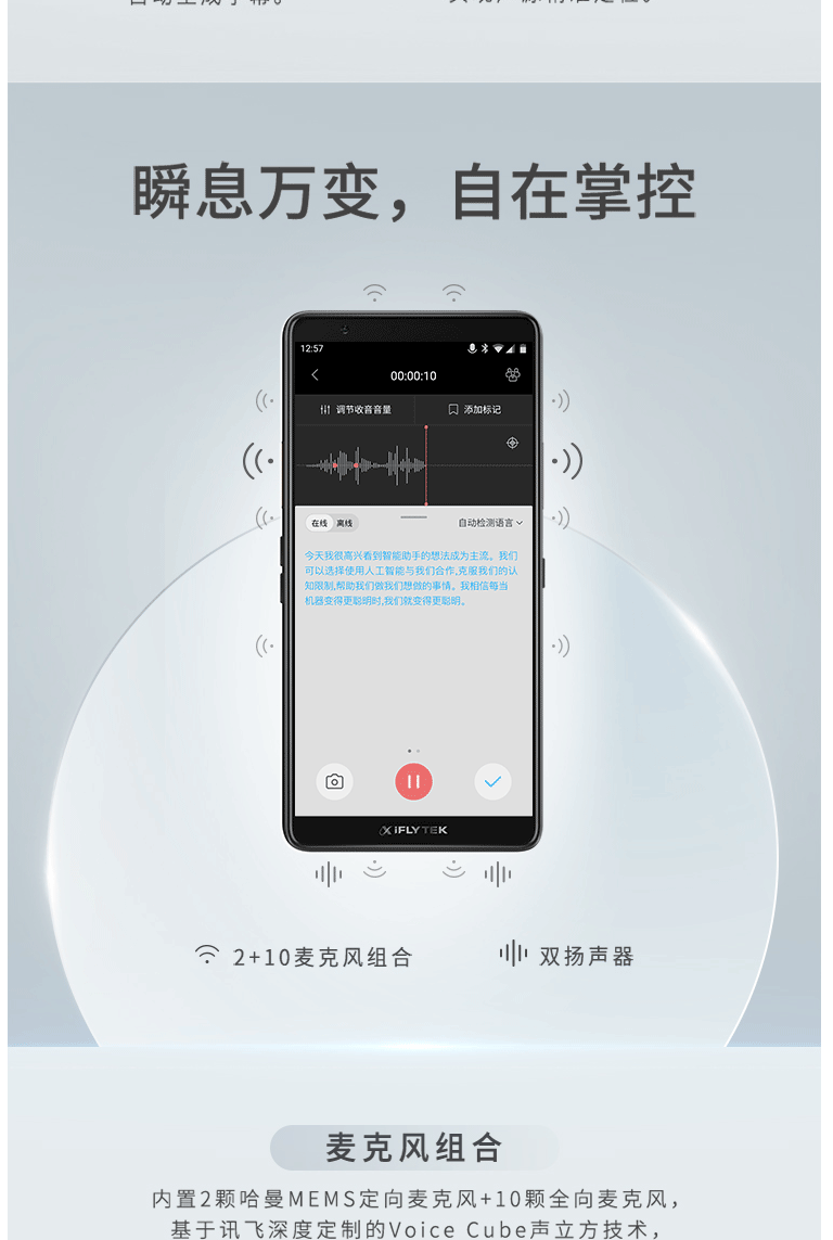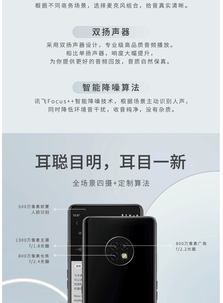 商品名称:科大讯飞AI智能录音笔SR901终身免费转写 中英转译专业触屏64G+云储存 钢琴黑