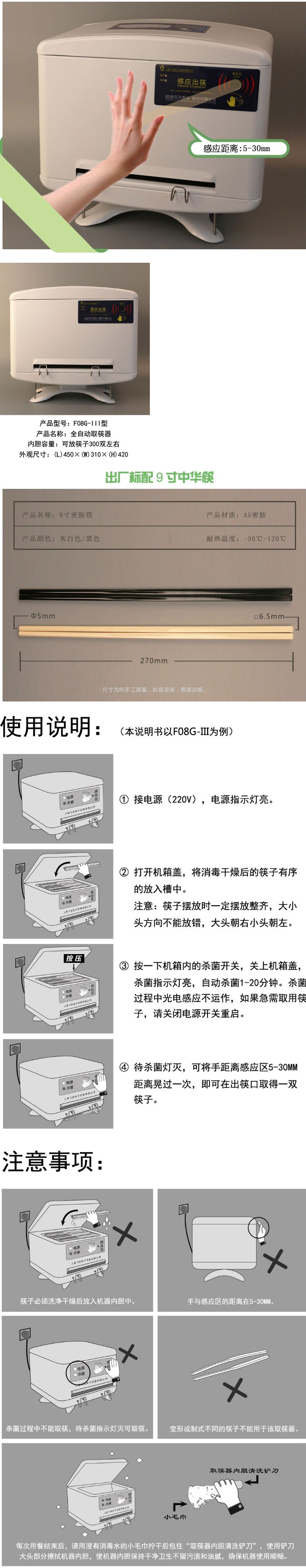 商品名称:全自动感应取筷器300型 不锈钢筷笼 筷子机 杀菌筷子机
