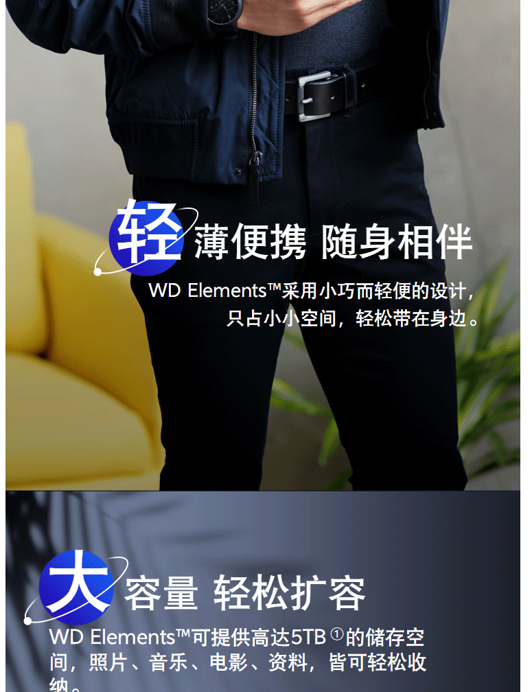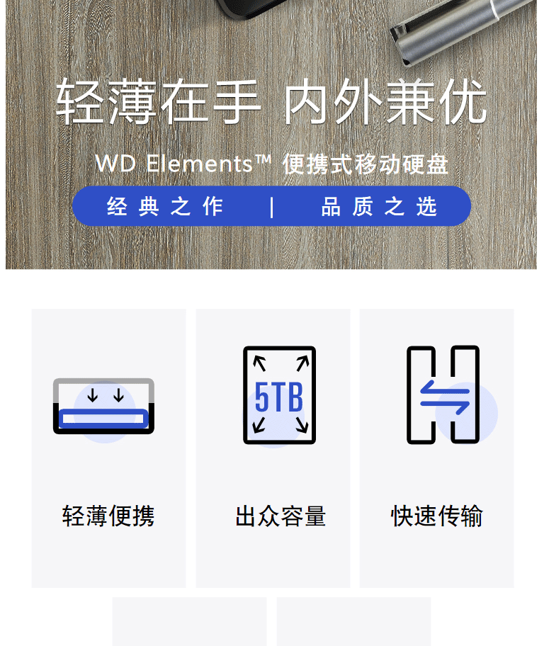 商品名称:西部数据(WD) 5TB USB3.0 移动硬盘 Elements 新元素系列2.5英寸