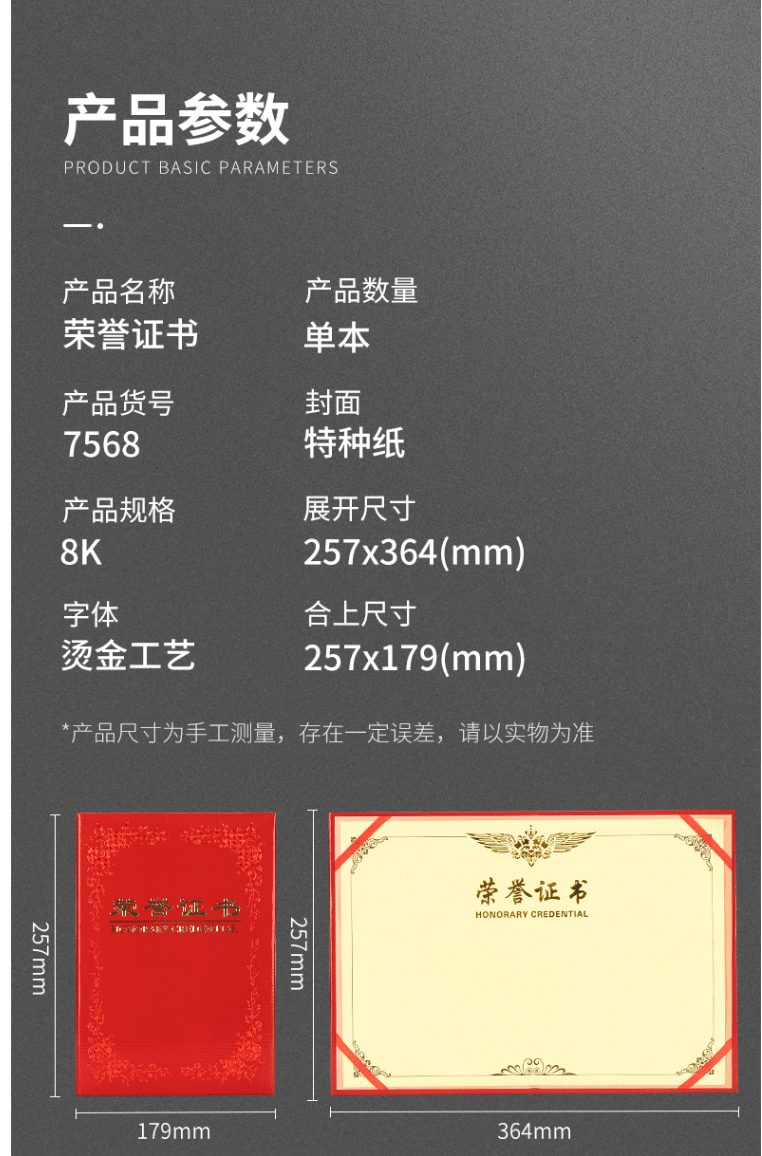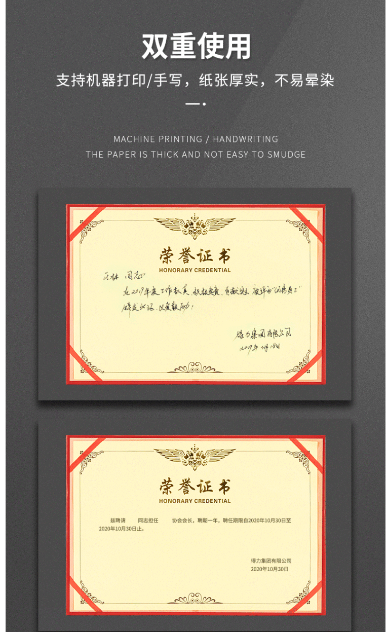 商品名称:得力(deli) 7568 8K铭誉系列荣誉证书 附赠内页一张(257*363mm)