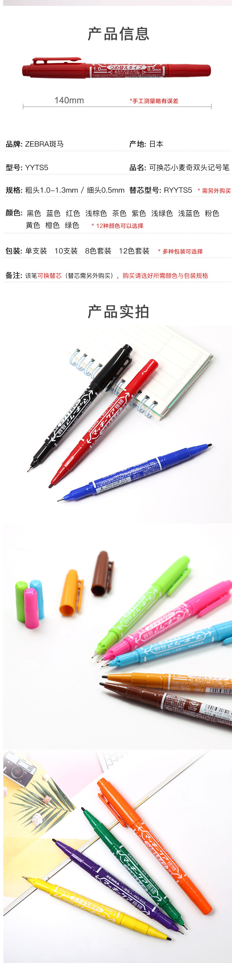 商品名称:日本斑马牌(ZEBRA)速干油性小双头记号笔 勾线描边笔 YYTS5 红色 10支/盒