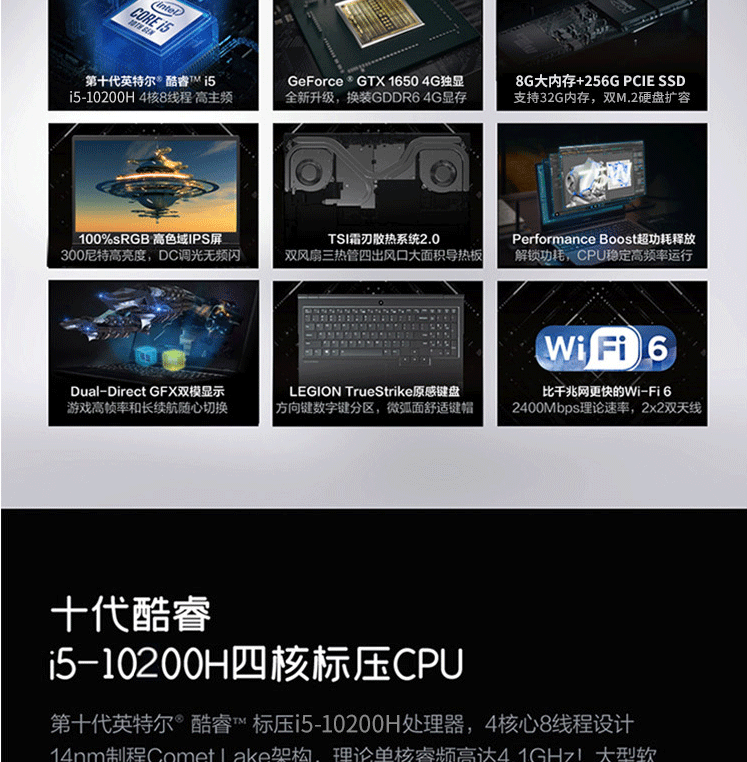 联想拯救者Y7000 2020新品酷睿i5/i7十代P高色域性能独显笔记本电脑 i5-10200H 16G 512G固态 GTX1650-4G显卡