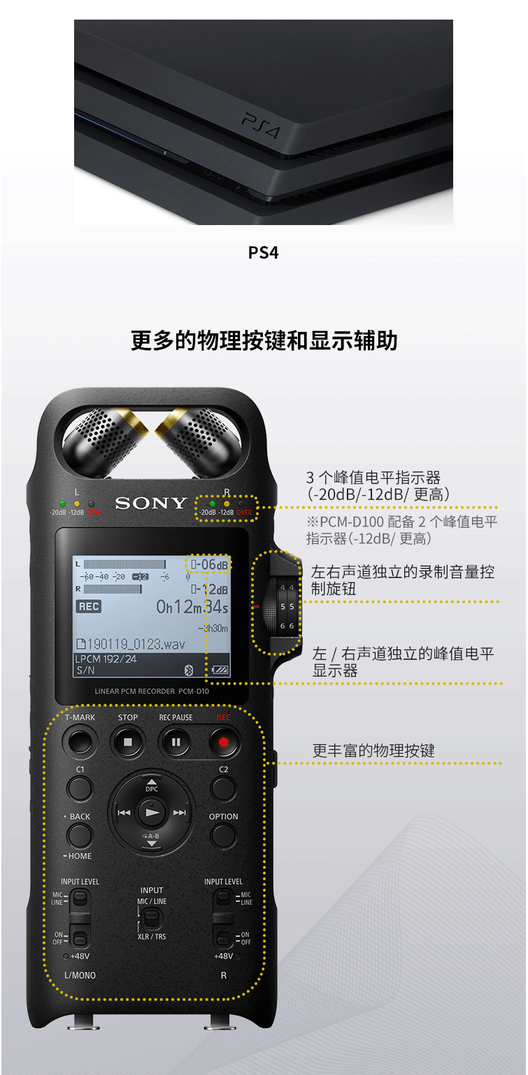索尼(SONY)专业数码录音笔PCM-D10 16GB 黑色