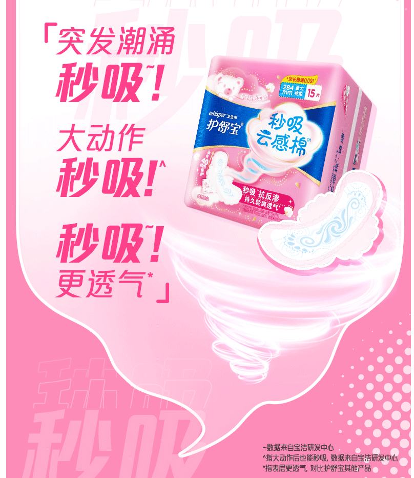 商品名称:护舒宝 秒吸云感棉 极薄量多日用/夜用卫生巾 284mm 15片/包 12包装