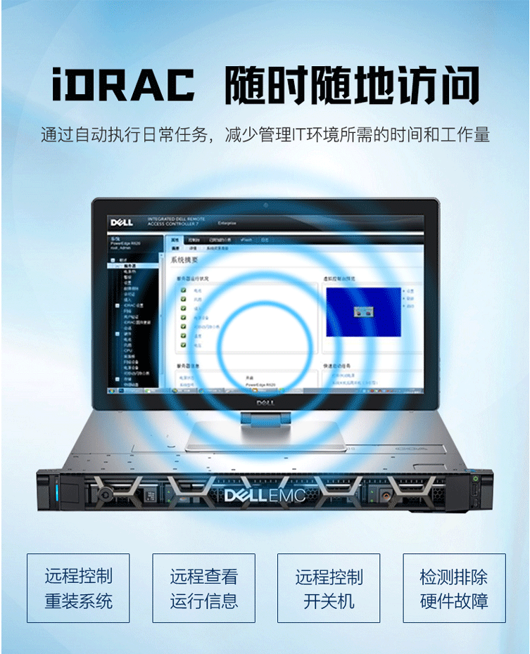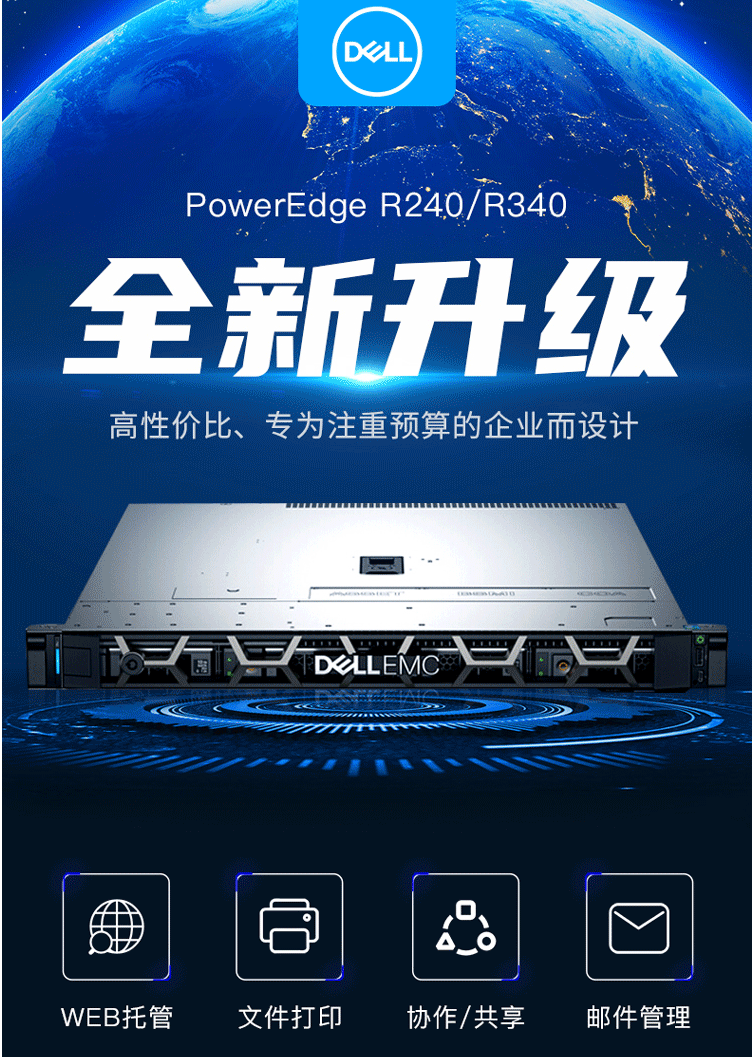 戴尔(DELL)1U机架式服务器文件共享主机 3.4主频 至强四核心 R240 E-2224/32G内存/2*1T硬盘/DVDRW/三年保