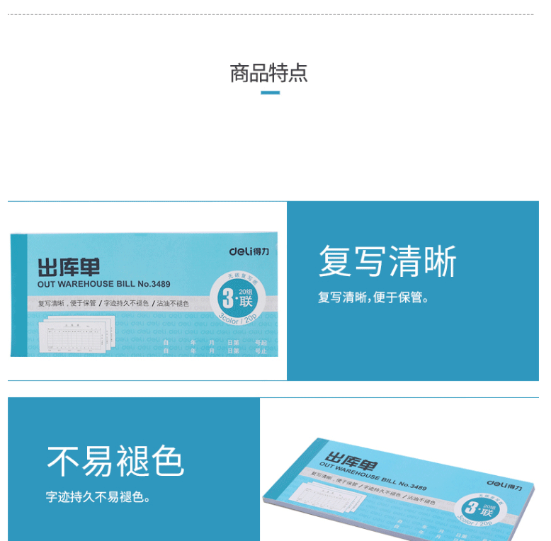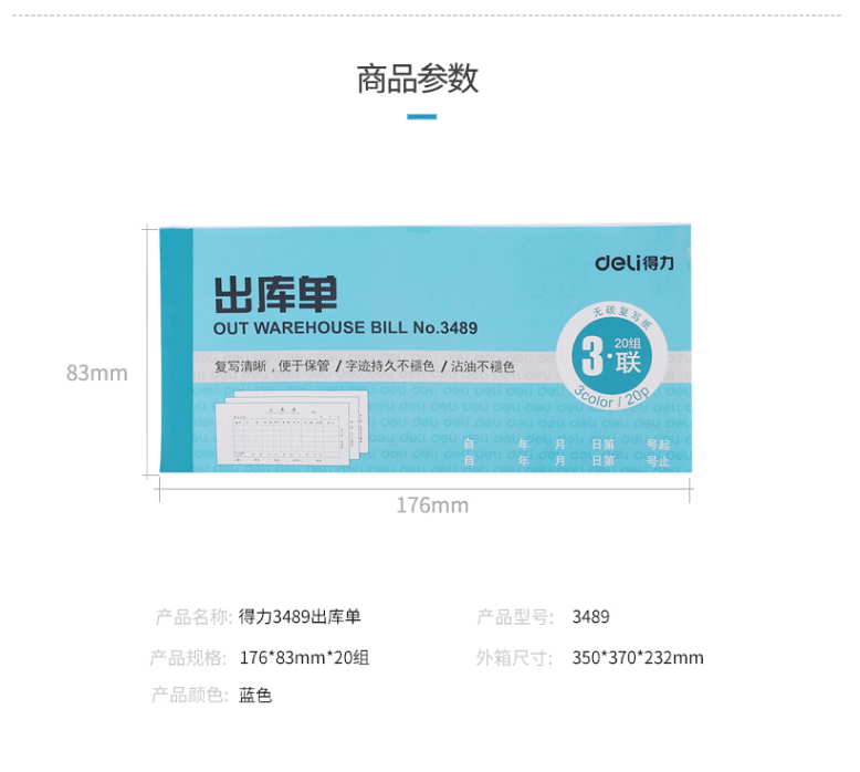 商品名称:得力(deli)3489 三联出库单 10本/包