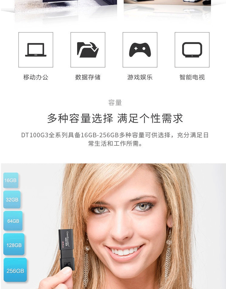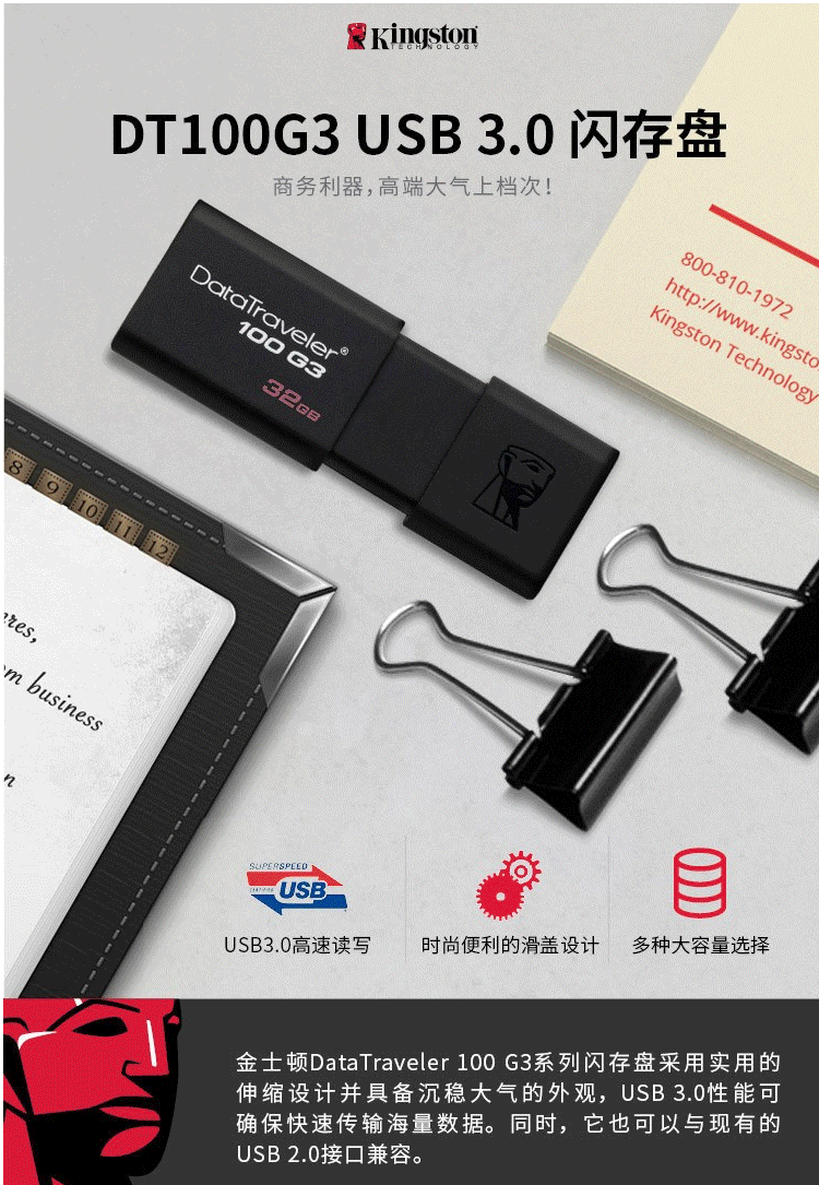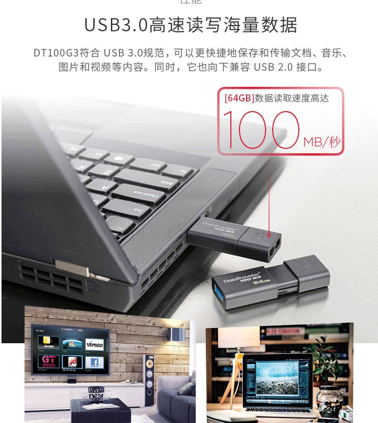 商品名称:金士顿(Kingston)u盘 64G USB3.0 DT100G3