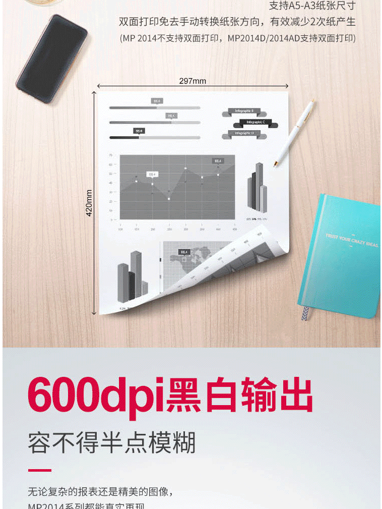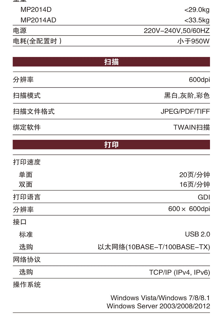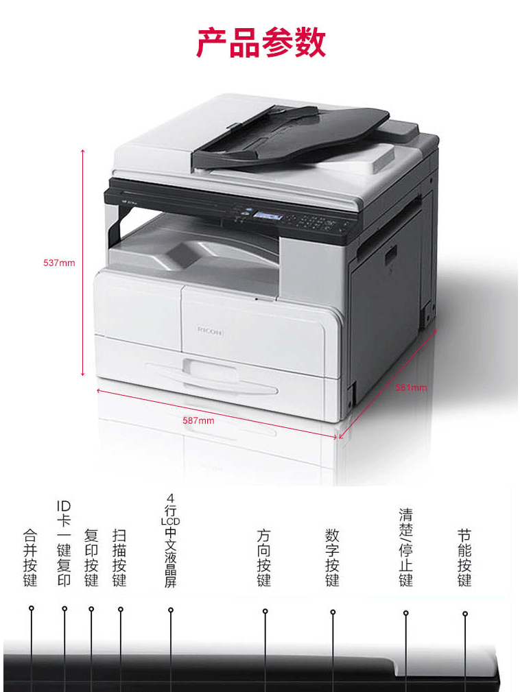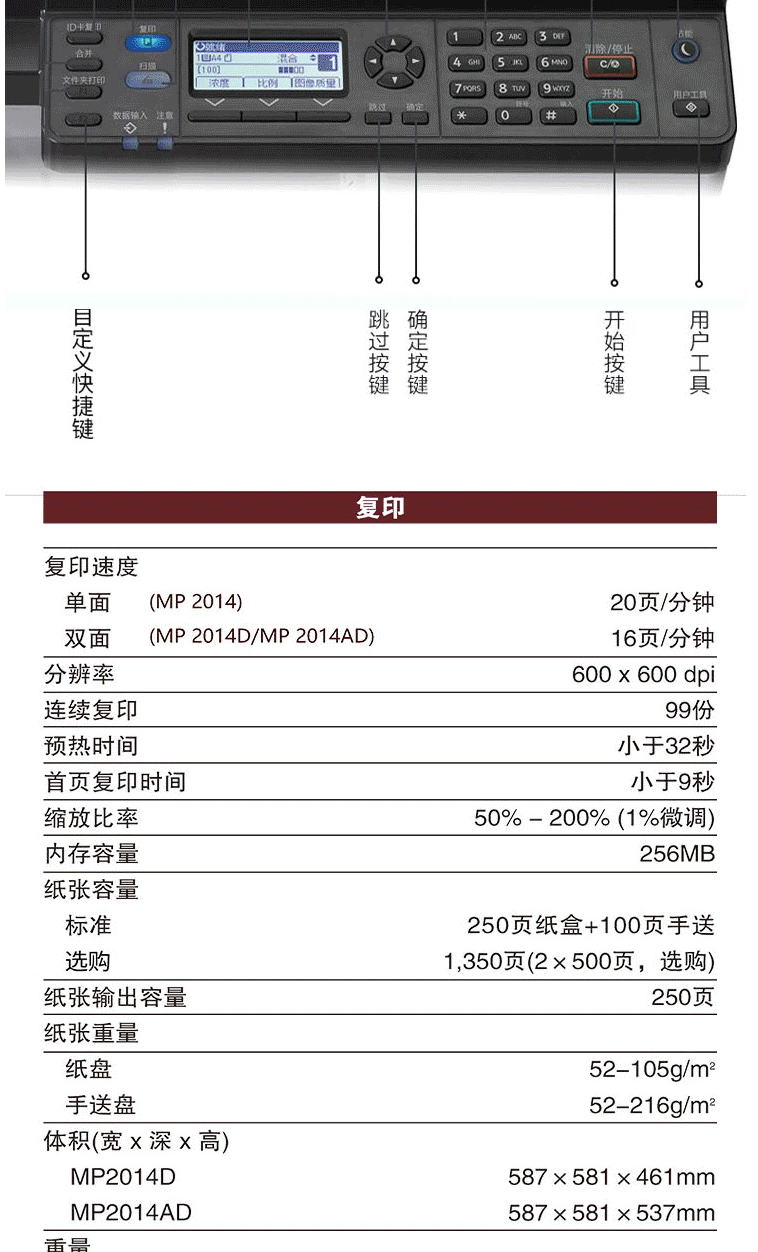 商品名称:理光(Ricoh)MP 2014AD A3黑白数码复合机(主机标配网络+双面器+输稿器+单纸盒)