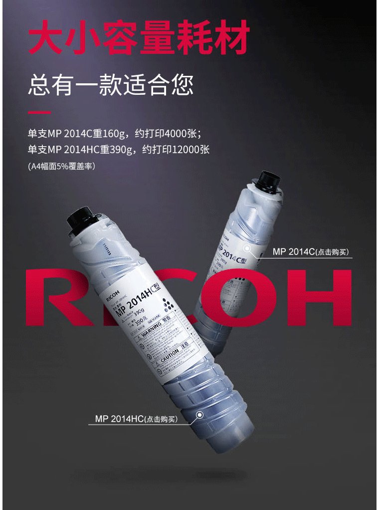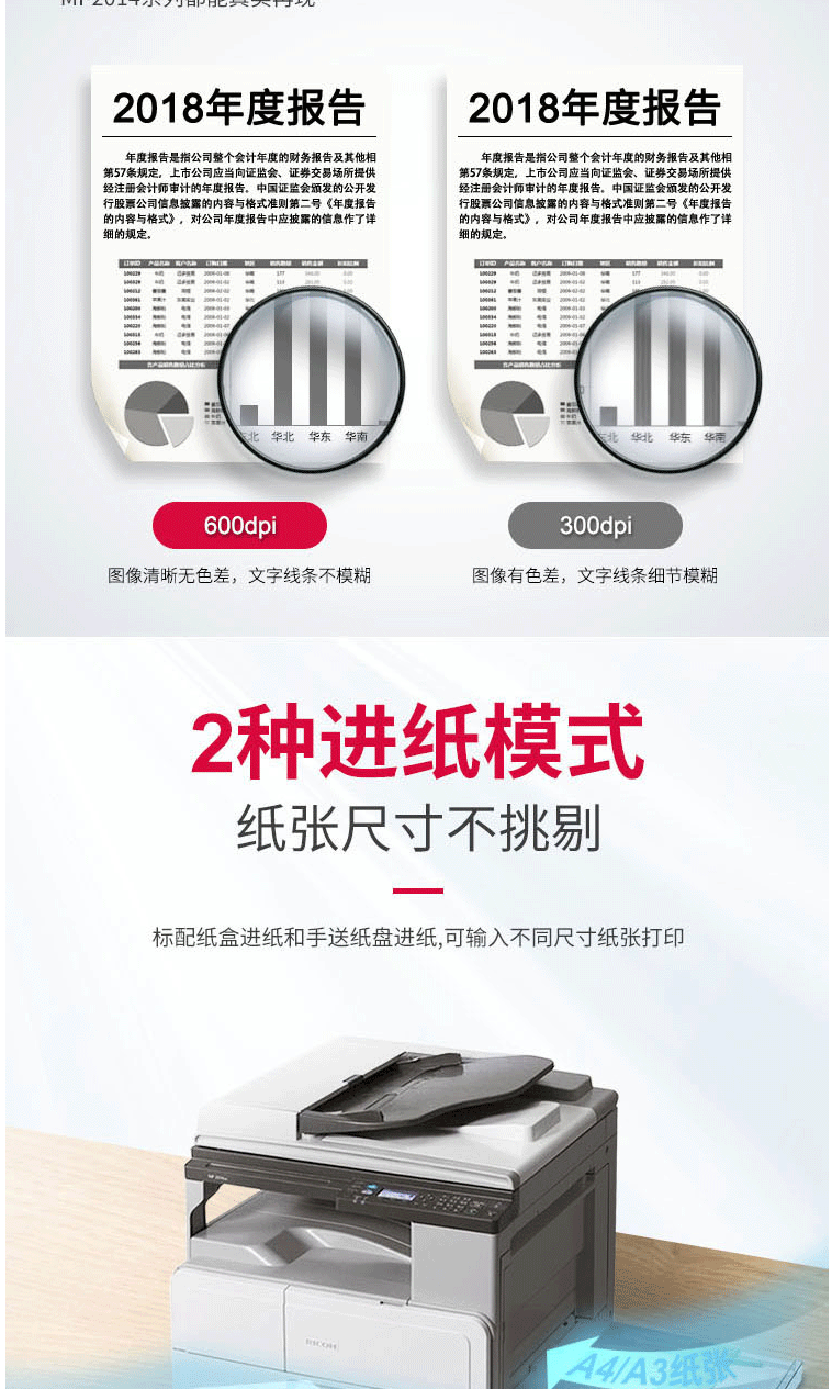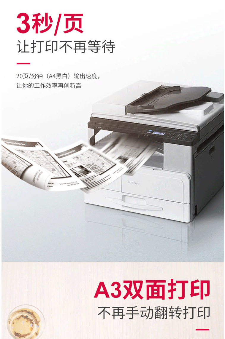 理光(Ricoh)MP 2014AD A3黑白数码复合机(主机标配网络+双面器+输稿器+单纸盒)
