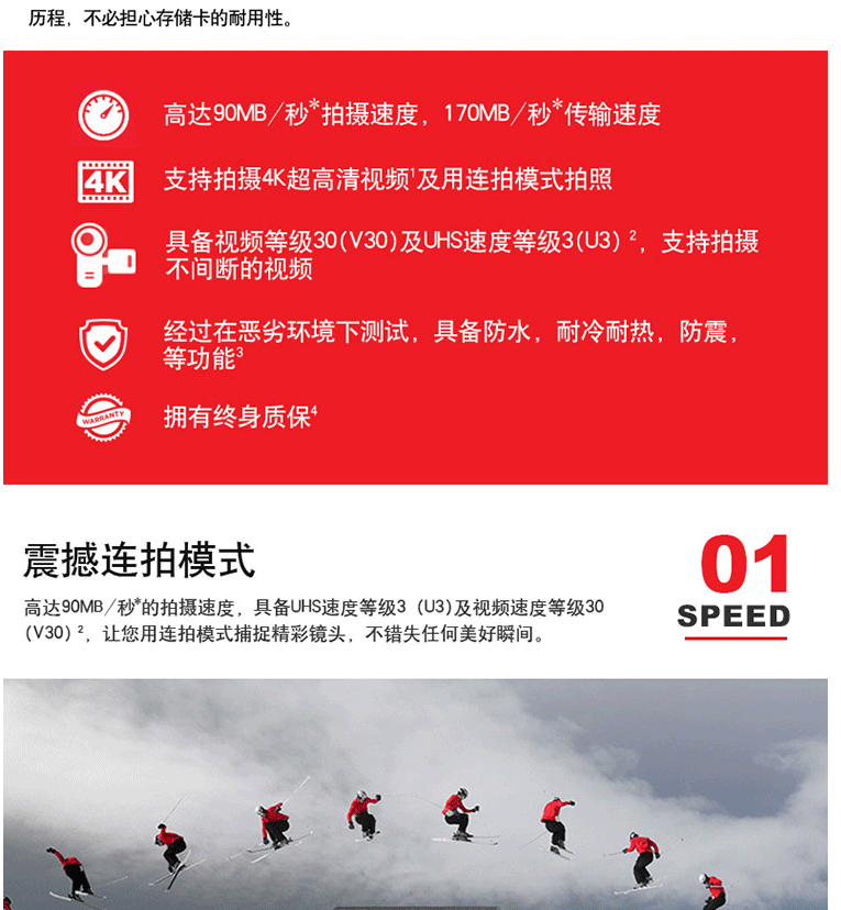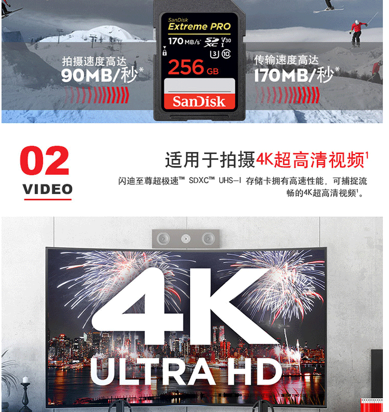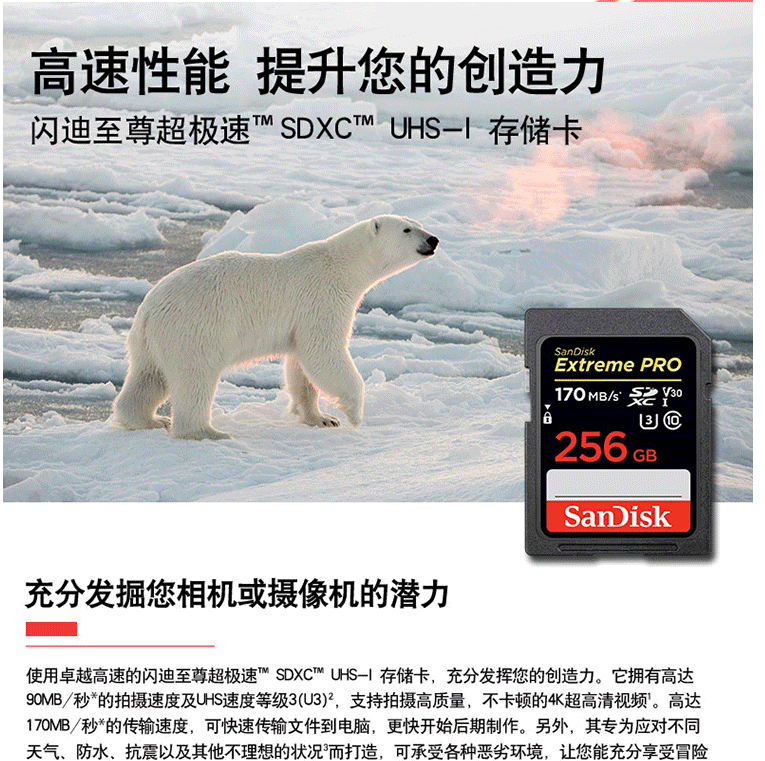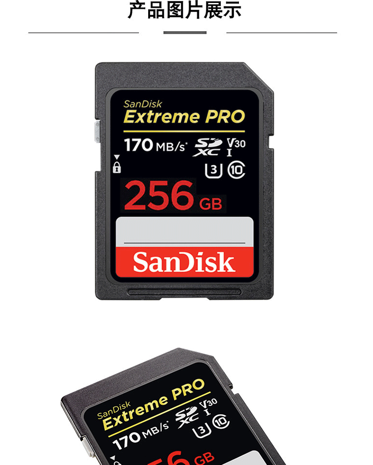 商品名称:闪迪(SanDisk)256GB SD存储卡 U3 C10 V30 4K至尊超极速版内存卡