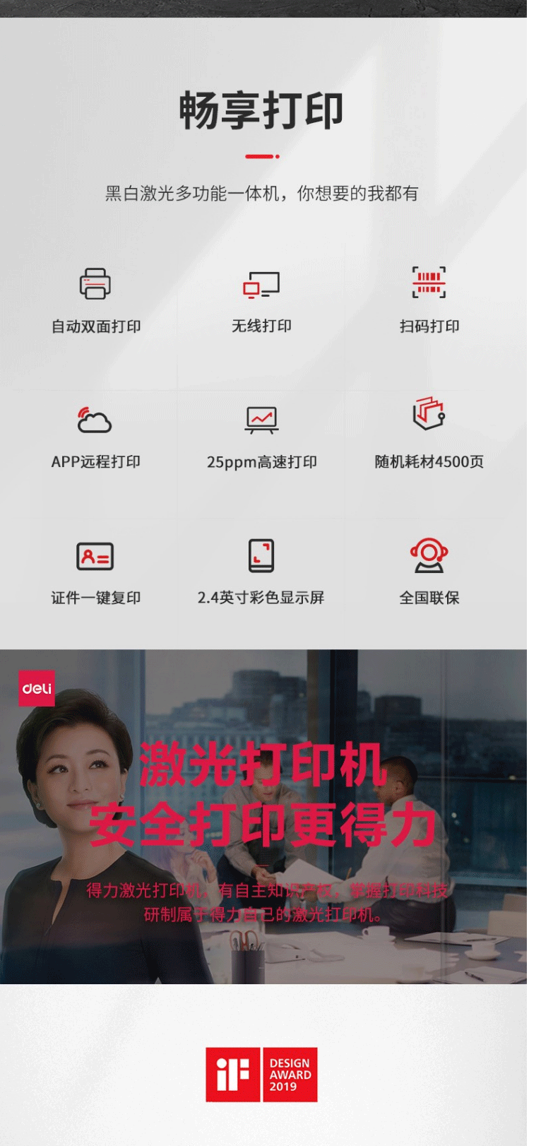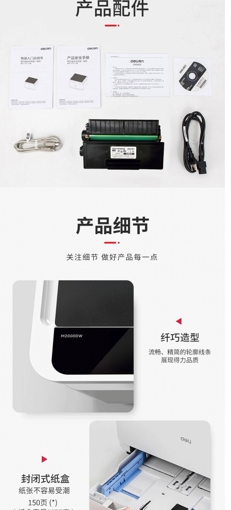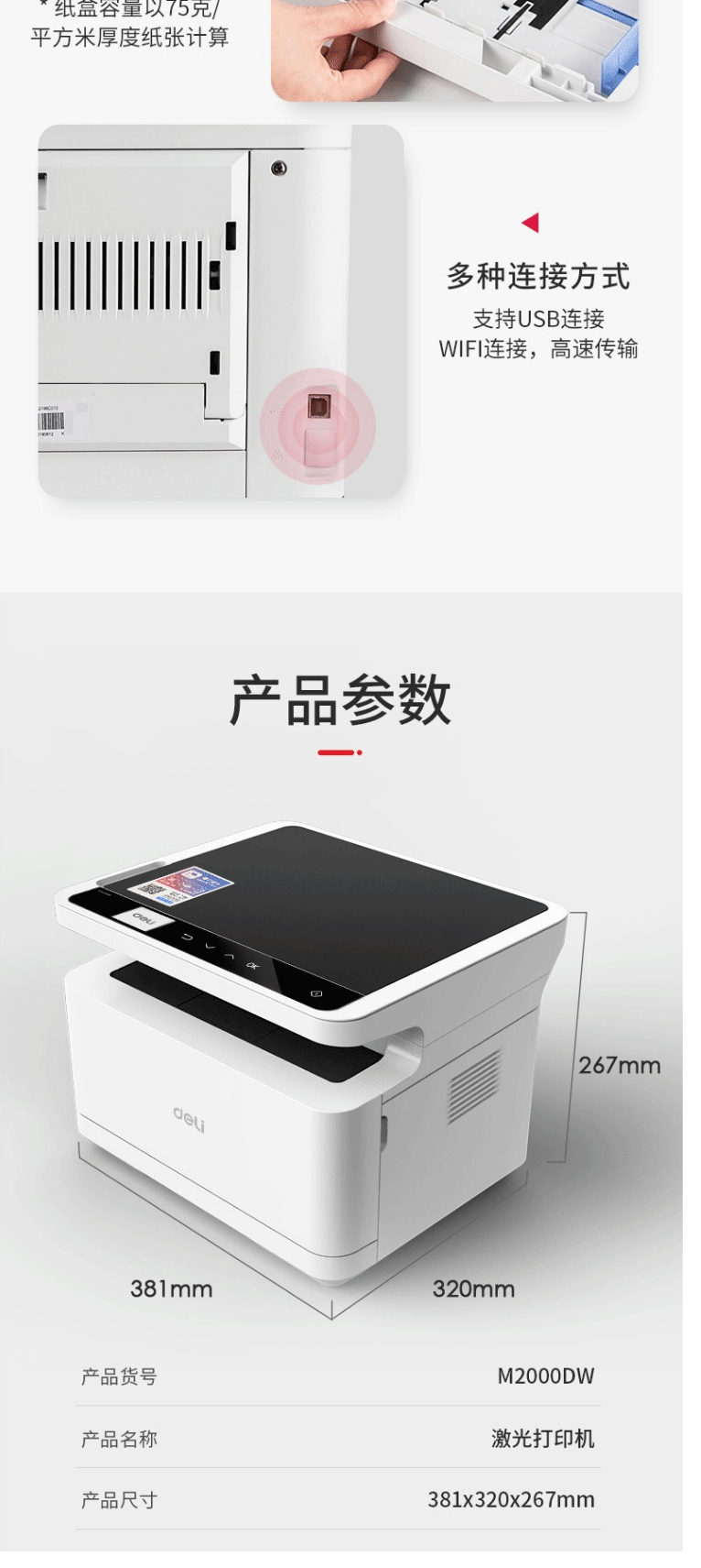商品名称:得力M2000DW激光打印复印扫描一体机双面/无线打印A4打印机一体机