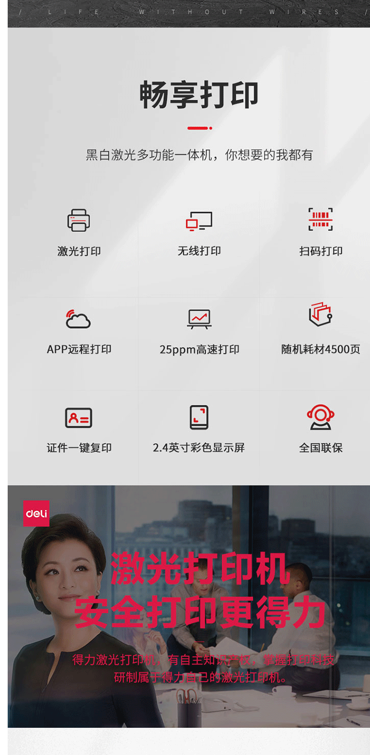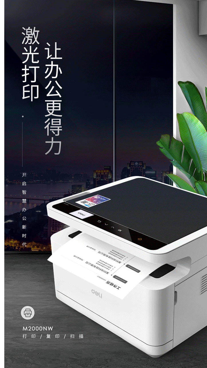 得力M2000NW激光打印复印扫描一体机无线/网络办公A4打印机一体机