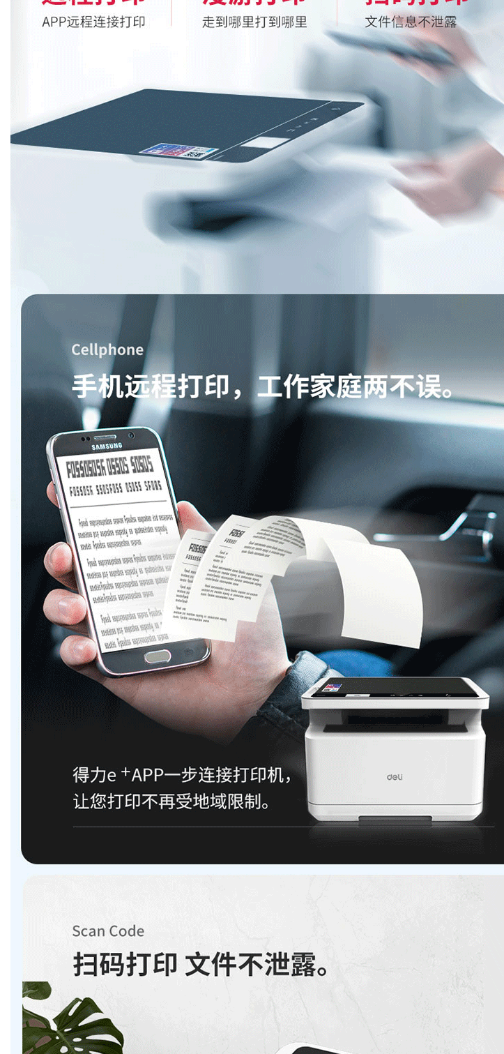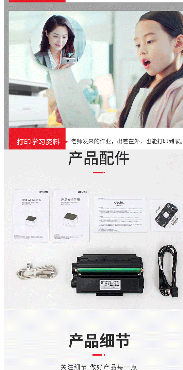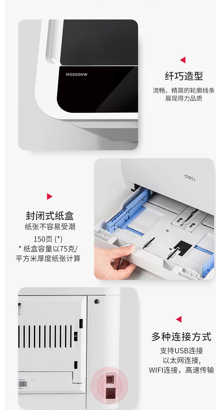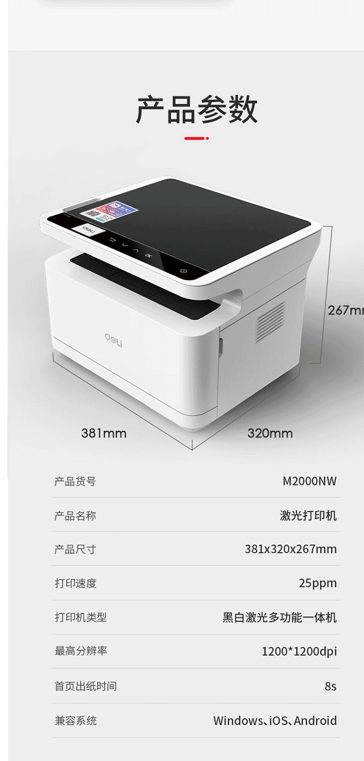 商品名称:得力M2000NW激光打印复印扫描一体机无线/网络办公A4打印机一体机