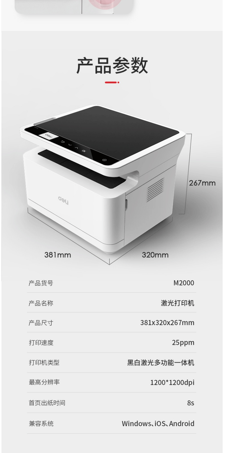 商品名称:得力M2000激光打印机复印扫描一体机A4打印学生打印机一体机