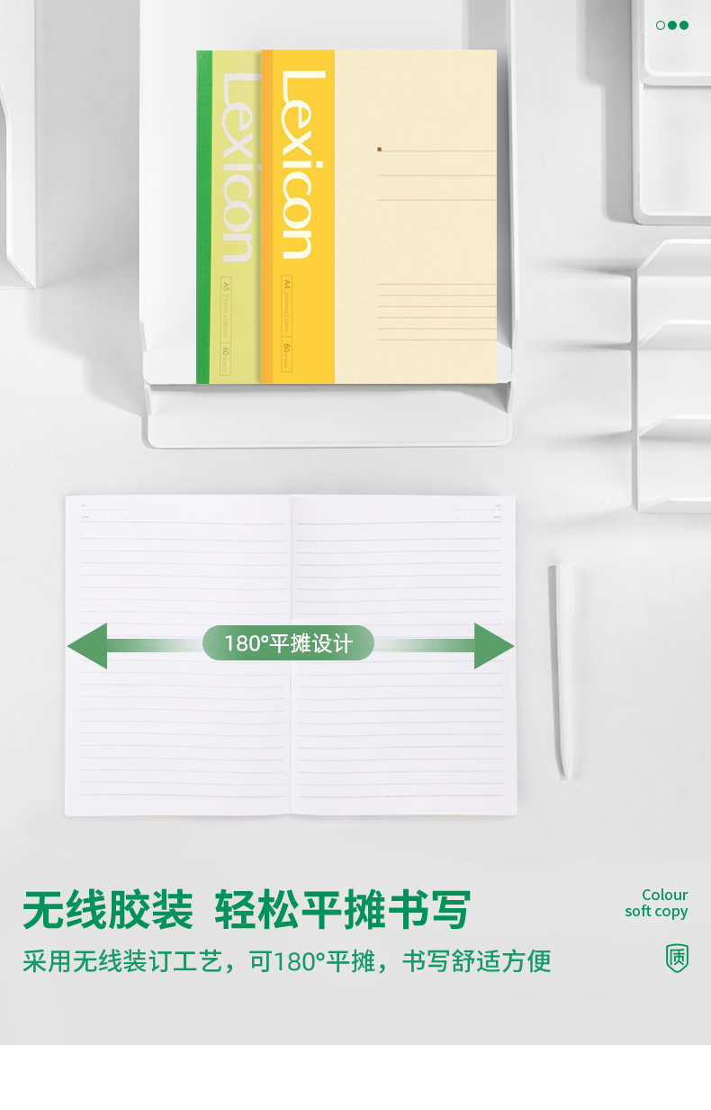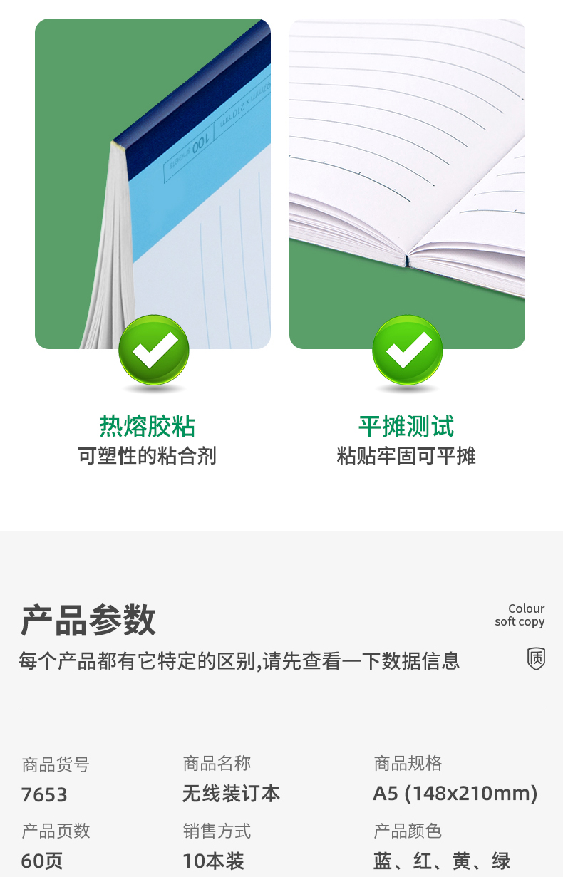 商品名称:得力7653办公无线装订本(混) A5-60张 10本/包