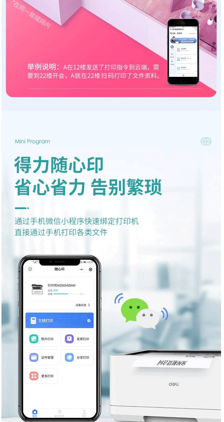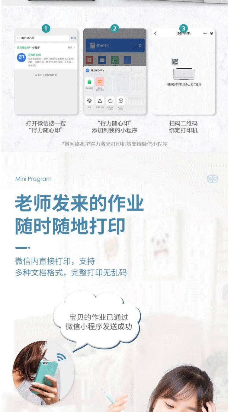 得力P2000DW激光打印机小型黑白激光打印机无线/双面办公A4打印机