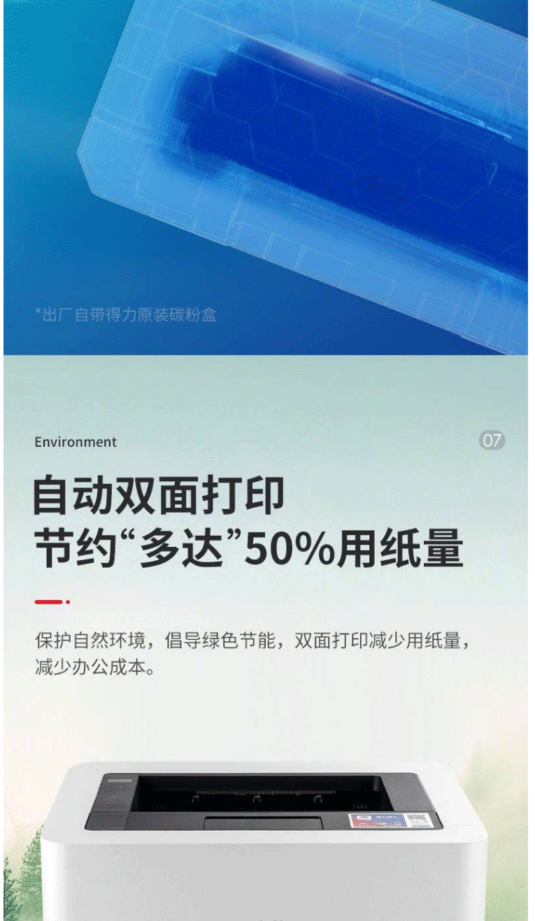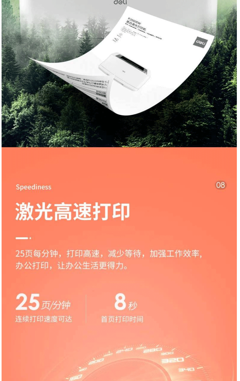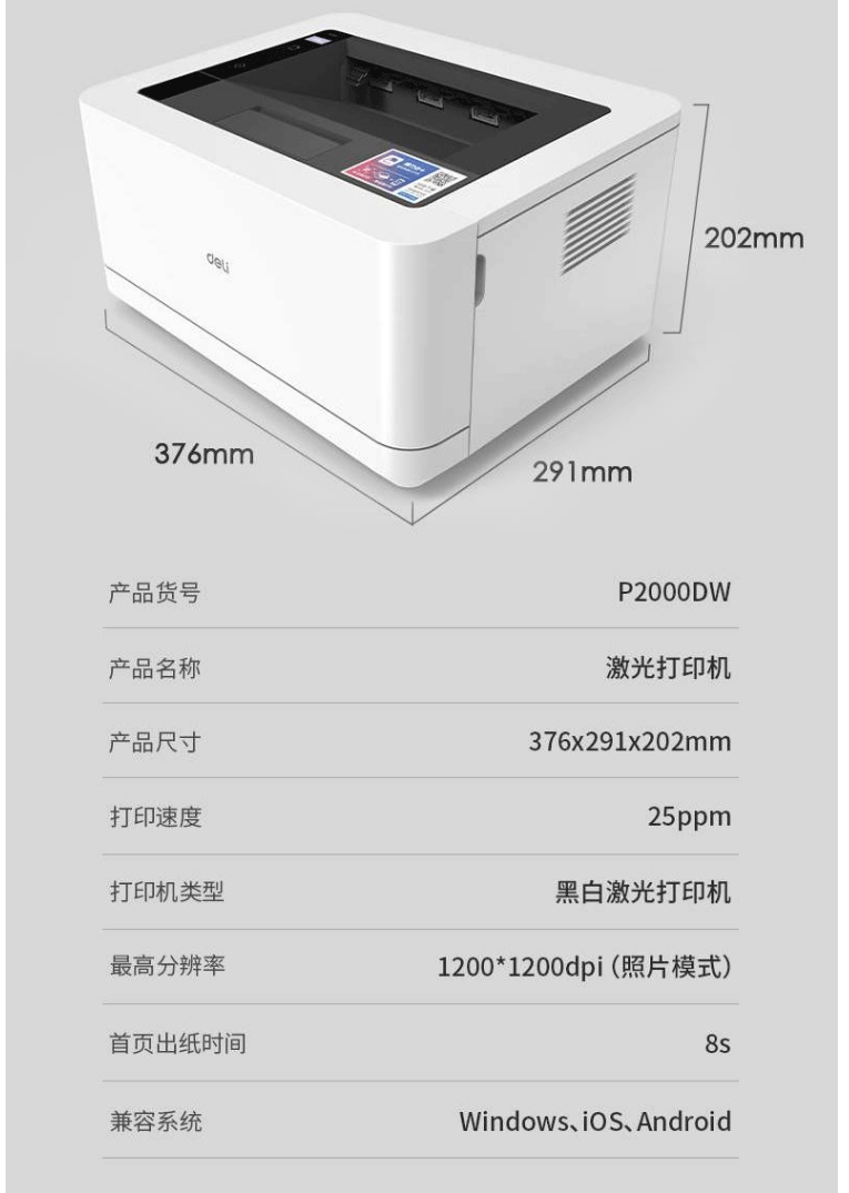 商品名称:得力P2000DW激光打印机小型黑白激光打印机无线/双面办公A4打印机