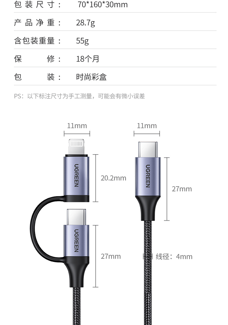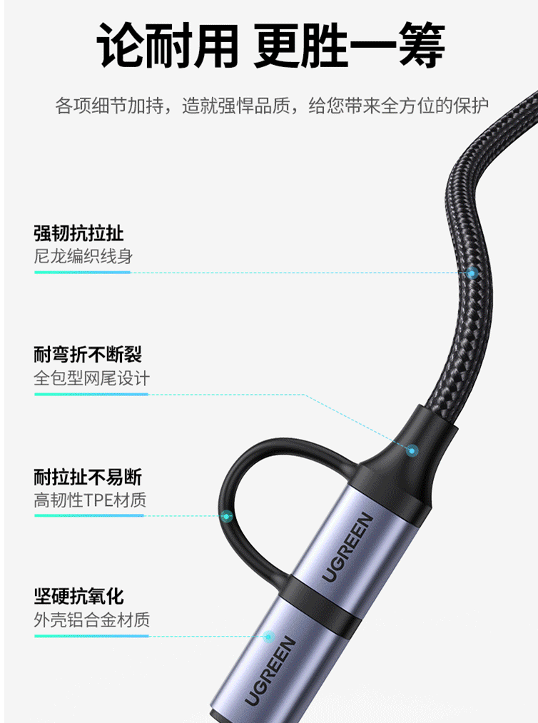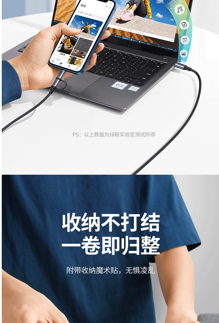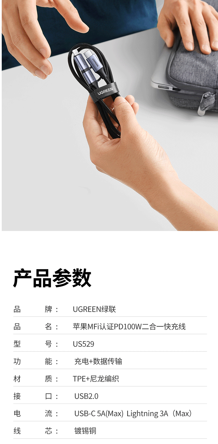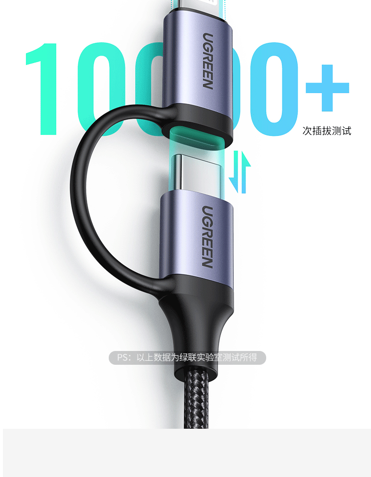 商品名称:绿联US529二合一快充数据线pd100W双type-c公对公闪充数据线60329