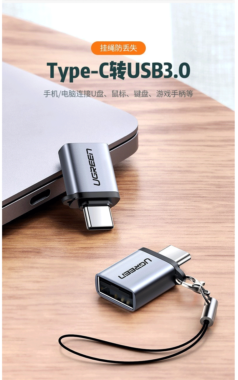 商品名称:绿联US270 Type-C转USB3.0转接头OTG数据线 深空灰 50283