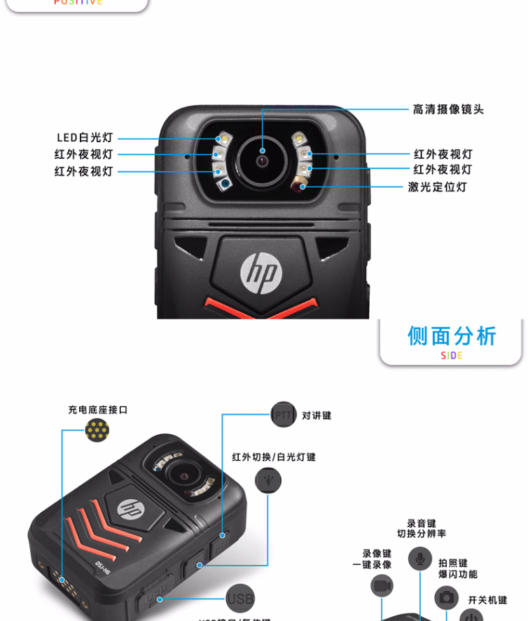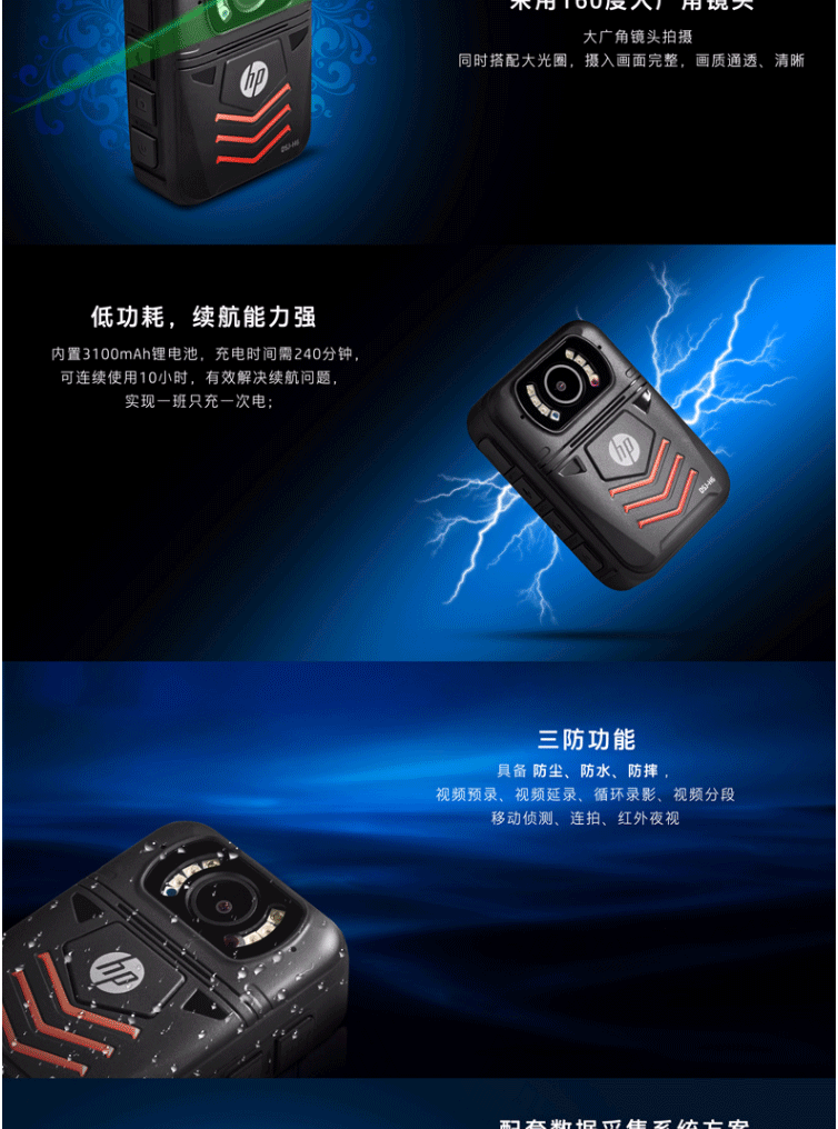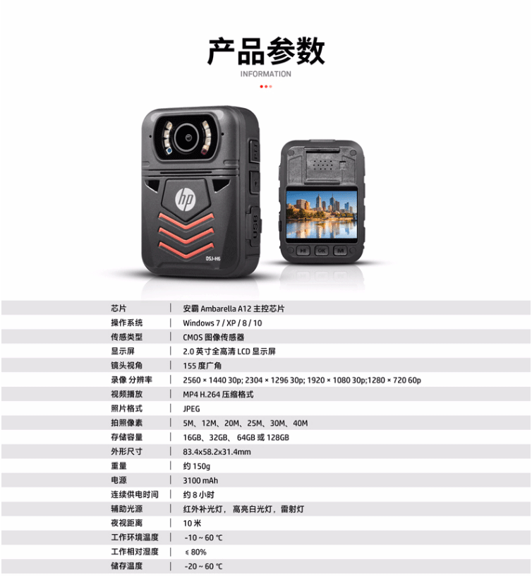 商品名称:惠普HP DSJ-H6 64G防爆执法记录仪1440P高清红外夜视4000万像素 黑色