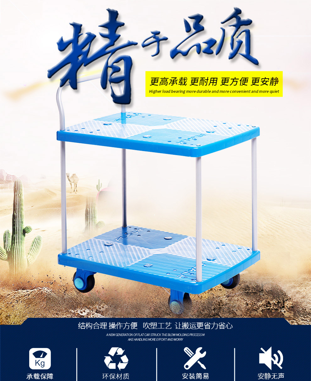 商品名称:双层平板车手推车 双层推车 仓库搬运车 拖车 工具车 拉货车 全静音