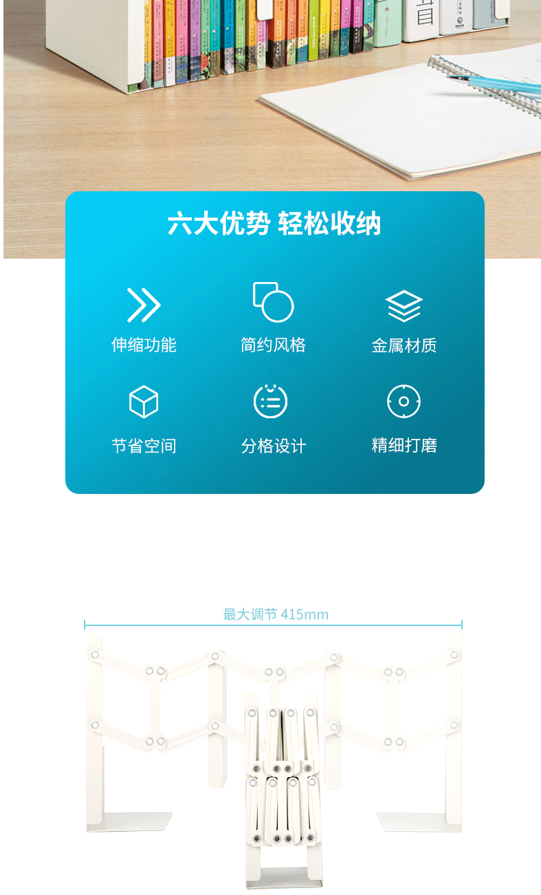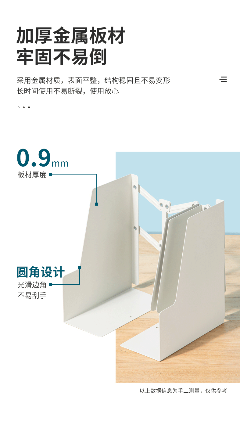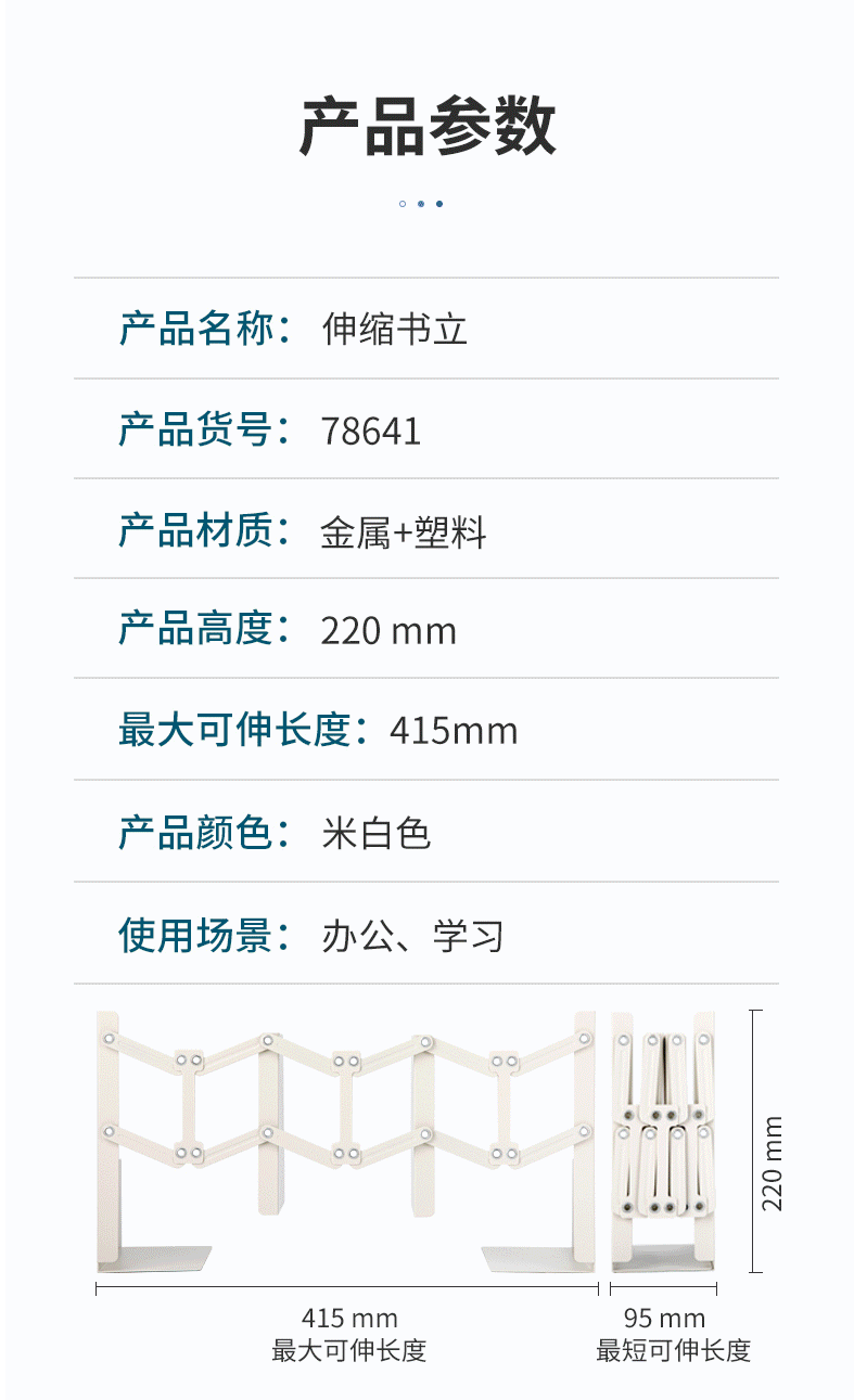 商品名称:得力可伸缩书立架创意书架 加厚升级款 78641米白