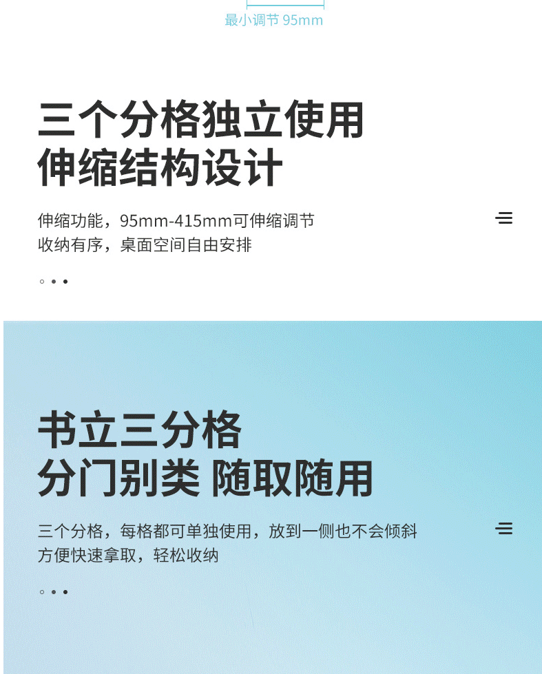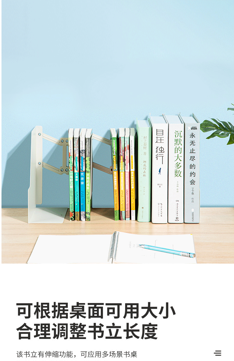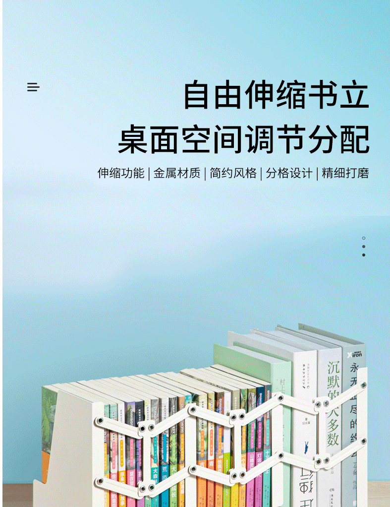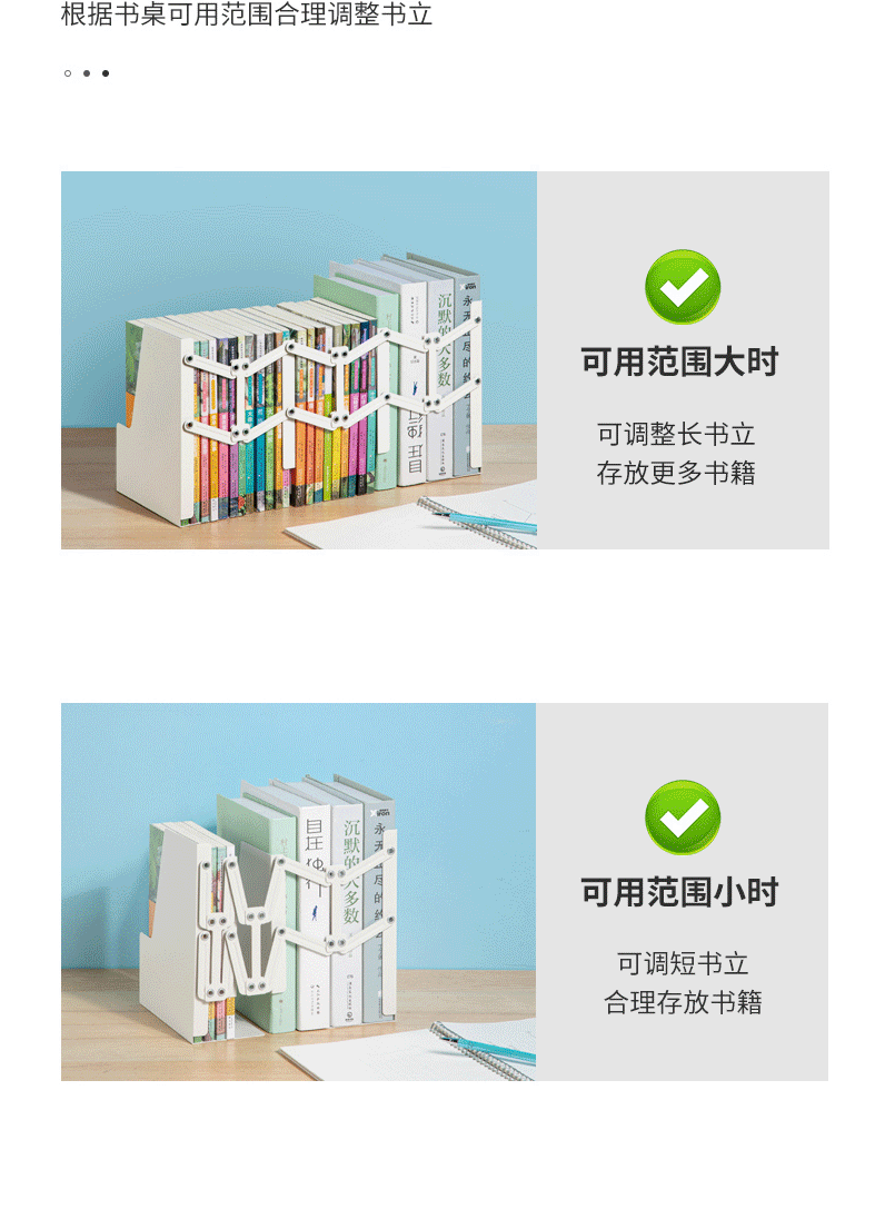 商品名称:得力可伸缩书立架创意书架 加厚升级款 78641米白