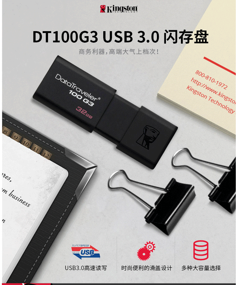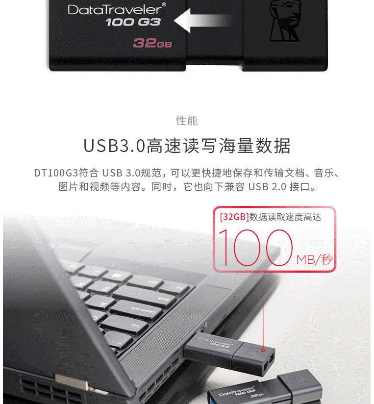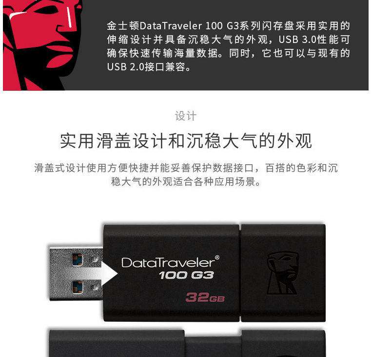 商品名称:金士顿(Kingston)32GB USB3.0 U盘 DT100G3 黑色