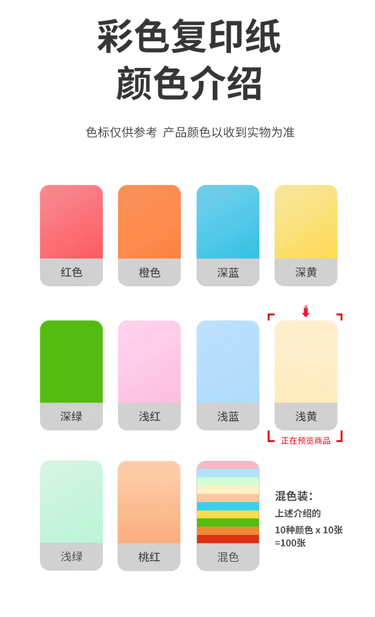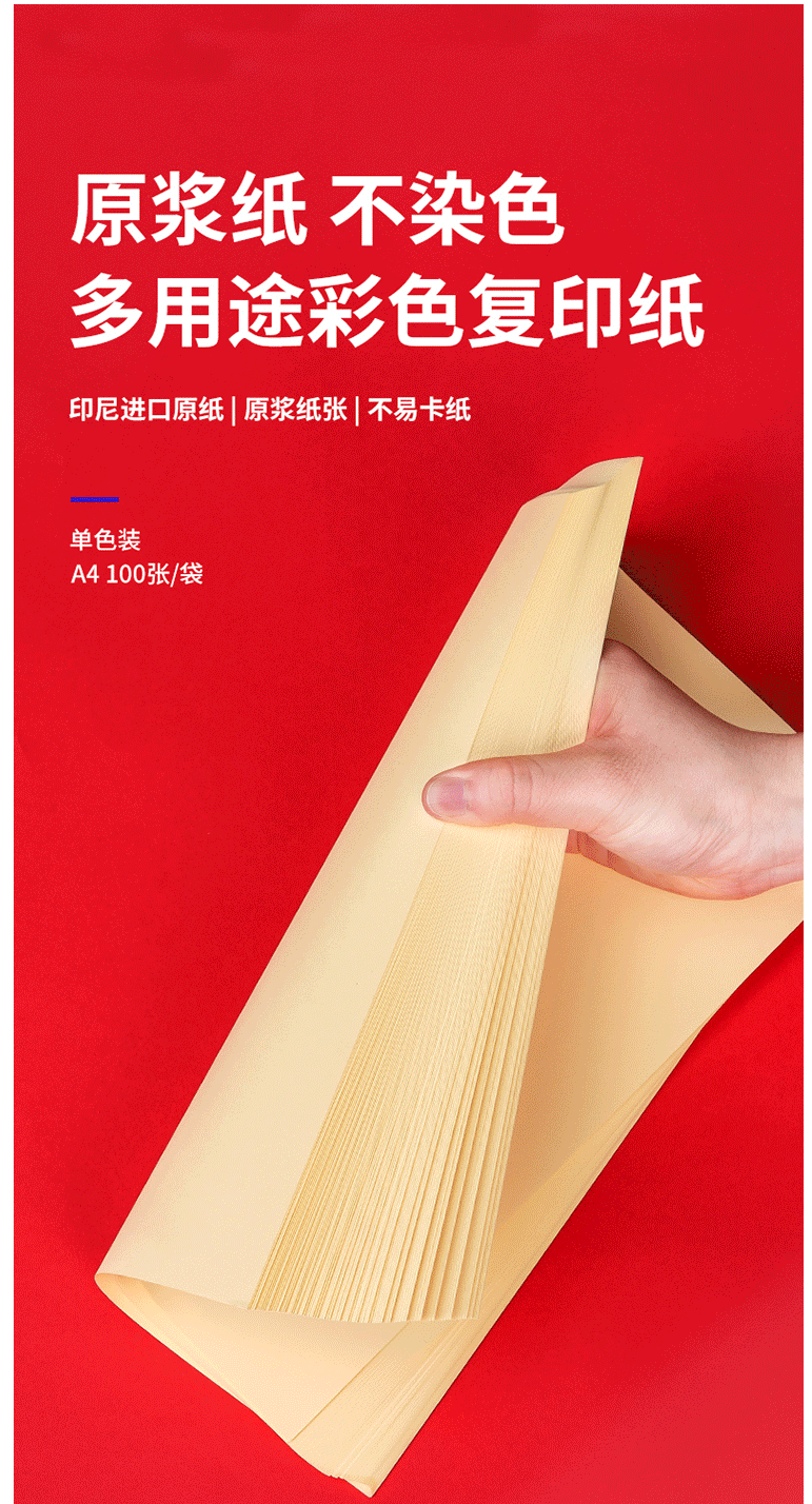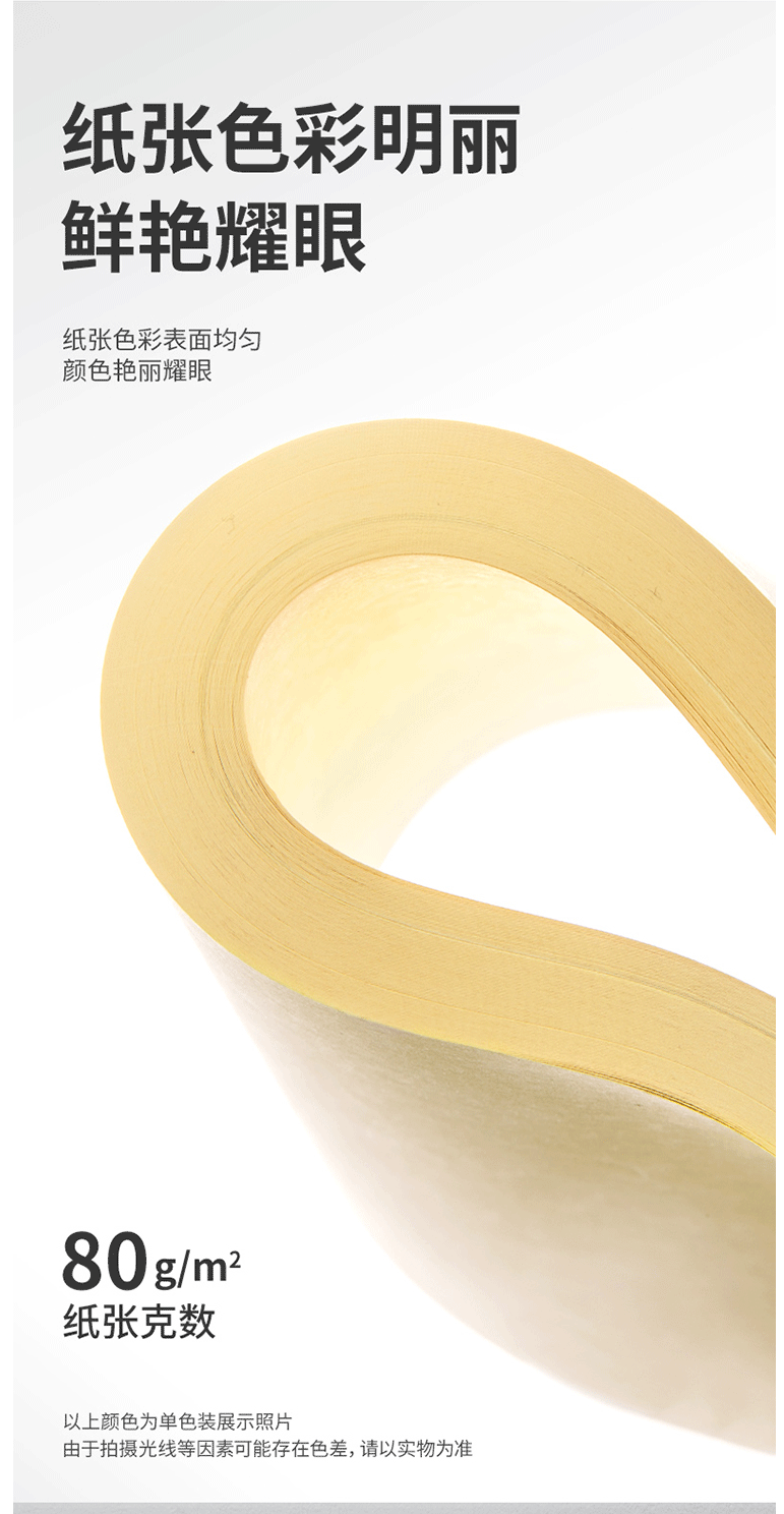 商品名称:得力(deli)A4 80g浅黄色复印纸 彩色打印纸 100张/包 7757浅黄