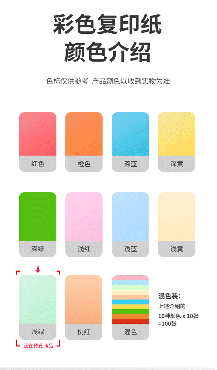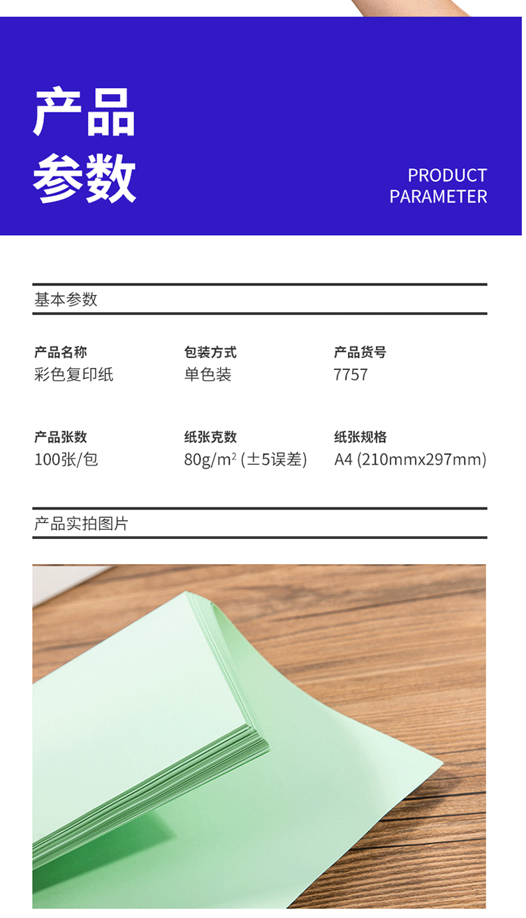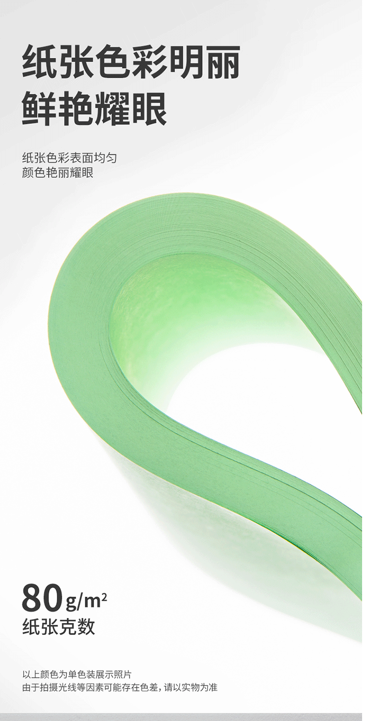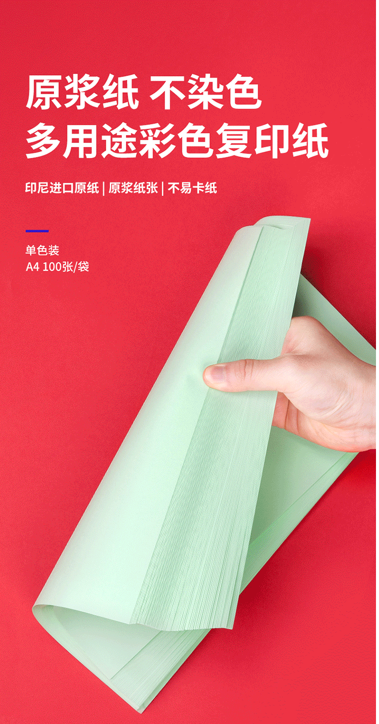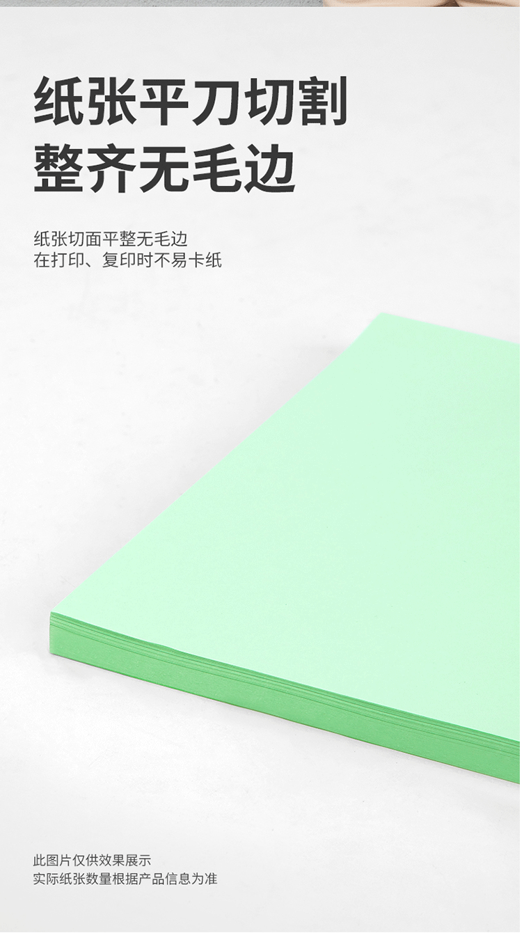商品名称:得力(deli)A4 80g浅绿色复印纸 彩色打印纸 100张/包 7757浅绿