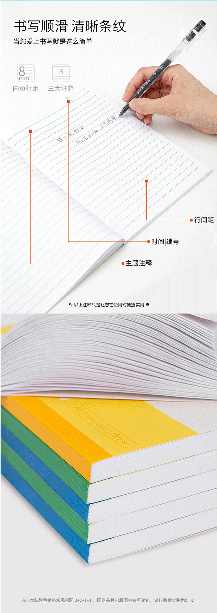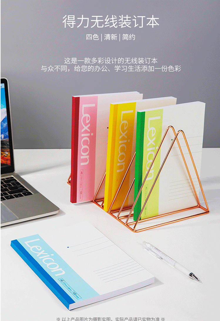 商品名称:得力7655办公无线装订本(混) A5-100张 6本/包