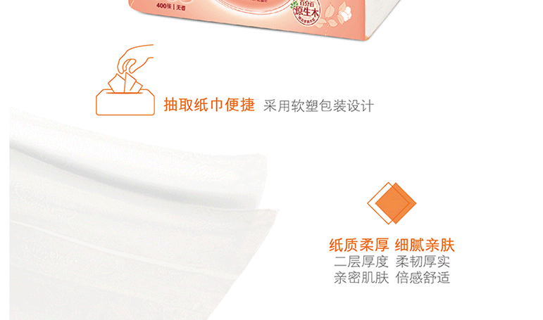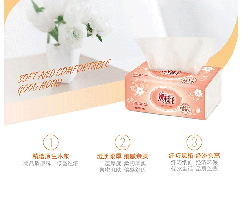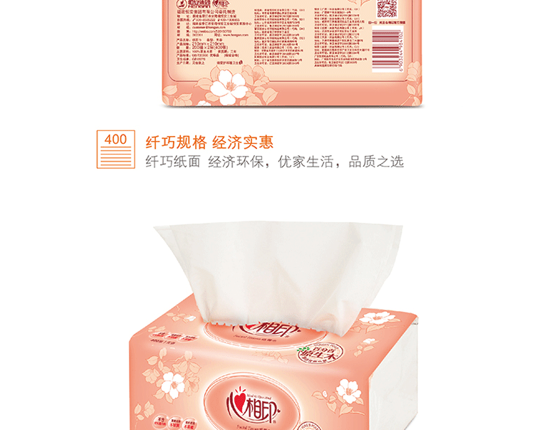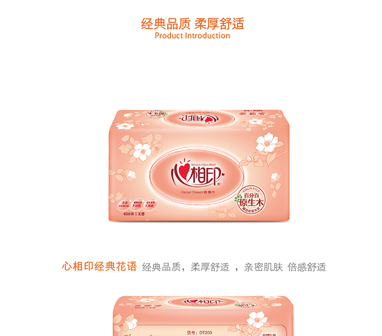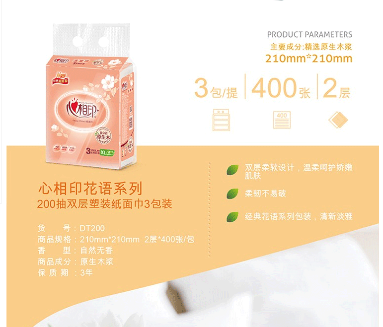 商品名称:心相印 纸抽 花语系列宽幅面巾 大码纸抽手纸DT200 (2层*200抽*48包)