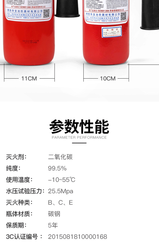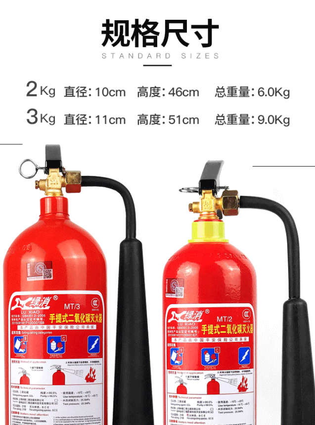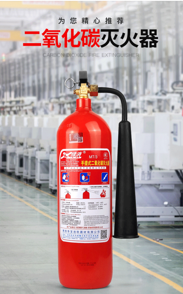 商品名称:绿消 手提式二氧化碳灭火器2公斤 机房精密仪器灭火器MT/2