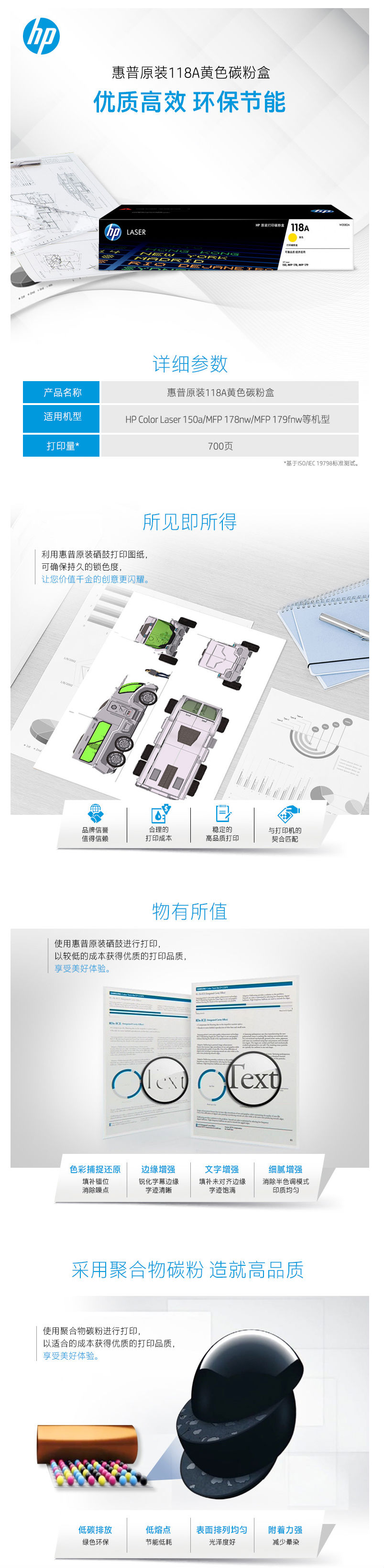 商品名称:惠普118A(W2082A)原装硒鼓黄色单支装(适用hp 150a/w 178nw 179fnw)