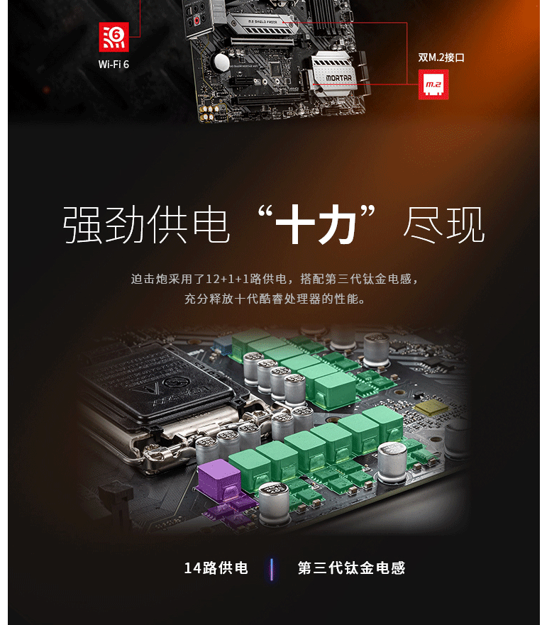 商品名称:微星(MSI)MAG B460M MORTAR WIFI迫击炮电脑主板