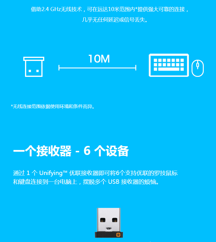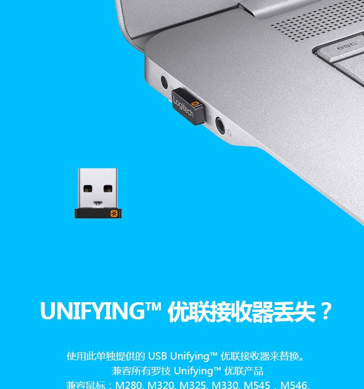 罗技(Logitech)USB优联接收器 无线鼠标键盘接收器 黑色